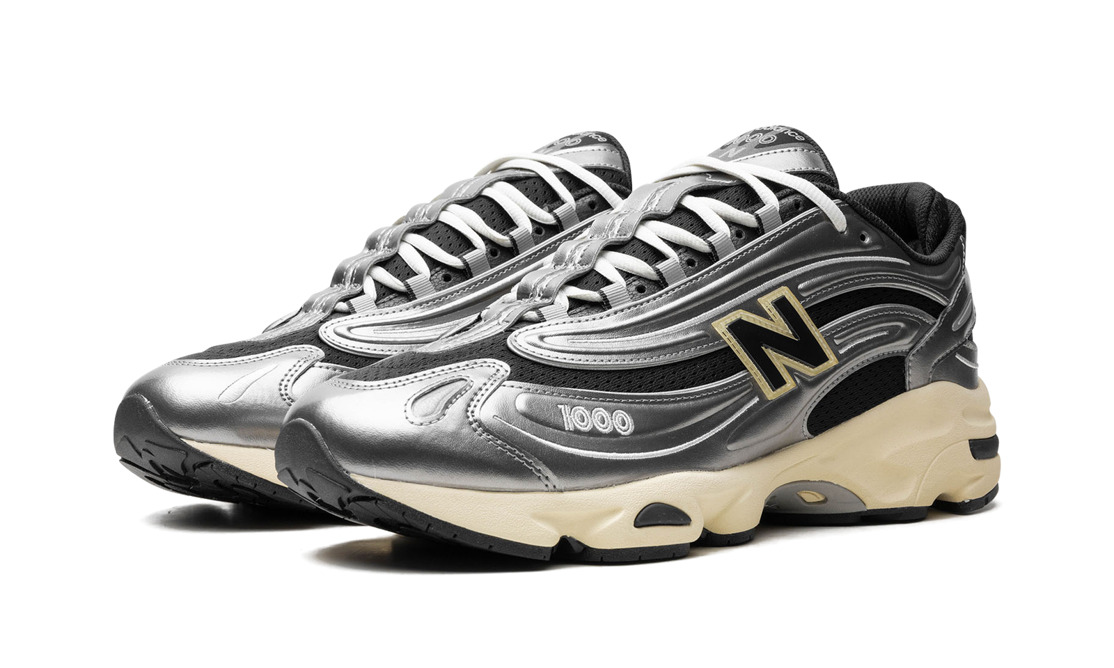 The New Balance 1000 “Silver Metallic” is the modern reissue of the shoe that debuted in 1999. Brought back by New Balance “Made in USA” Creative Director Teddy Santis in 2024, the New Balance 1000 has a retro yet futuristic appearance. The upper has a black mesh base and sleek Silver Metallic leather overlays. A black “N” logo with yellow trim appears on the sides and a “1000” logo can be found on the lateral side of the forefoot. “New Balance 1000” branding appears on the tongue and heel. A cream-colored foam midsole gives the shoe a decidedly vintage look. Release date: April 24, 2024