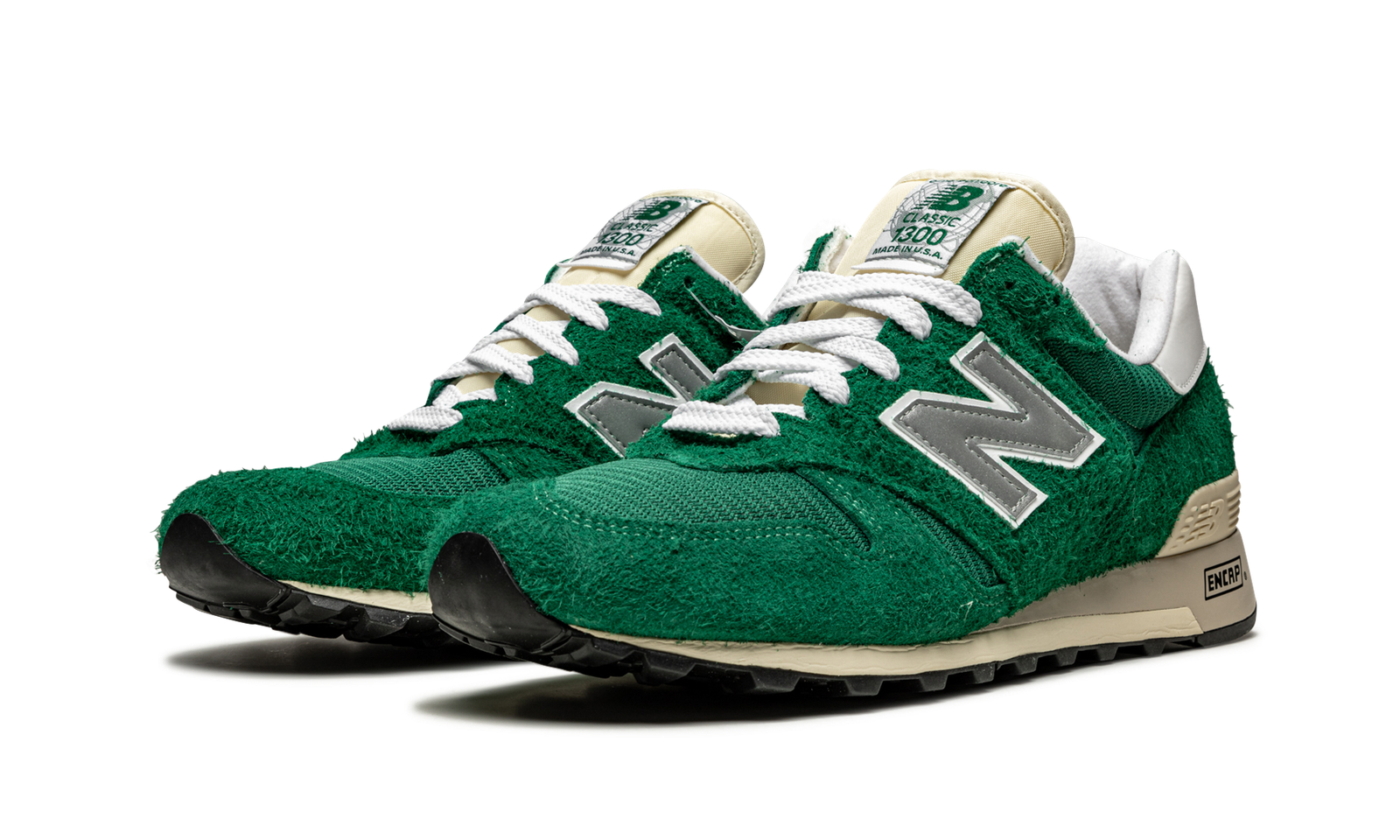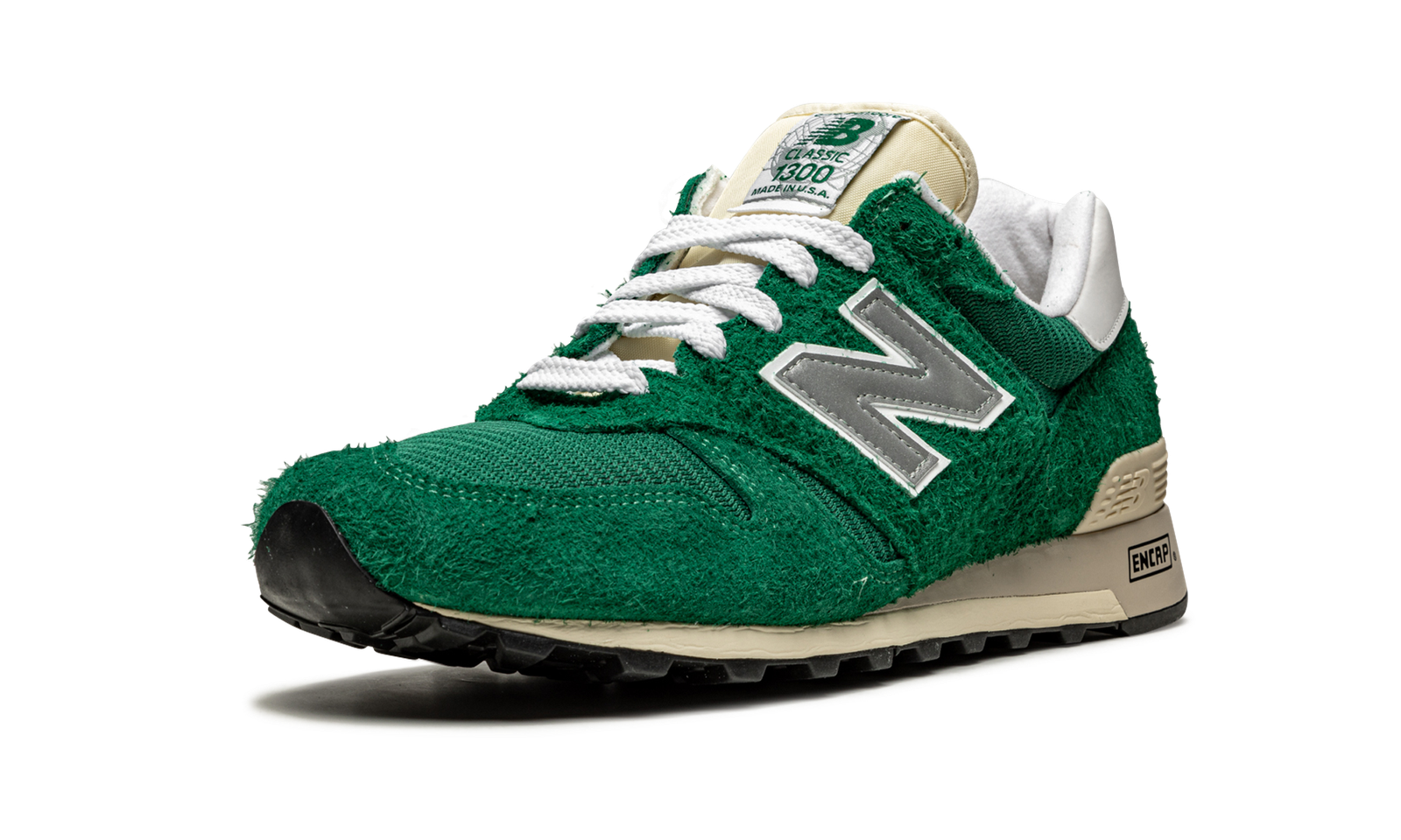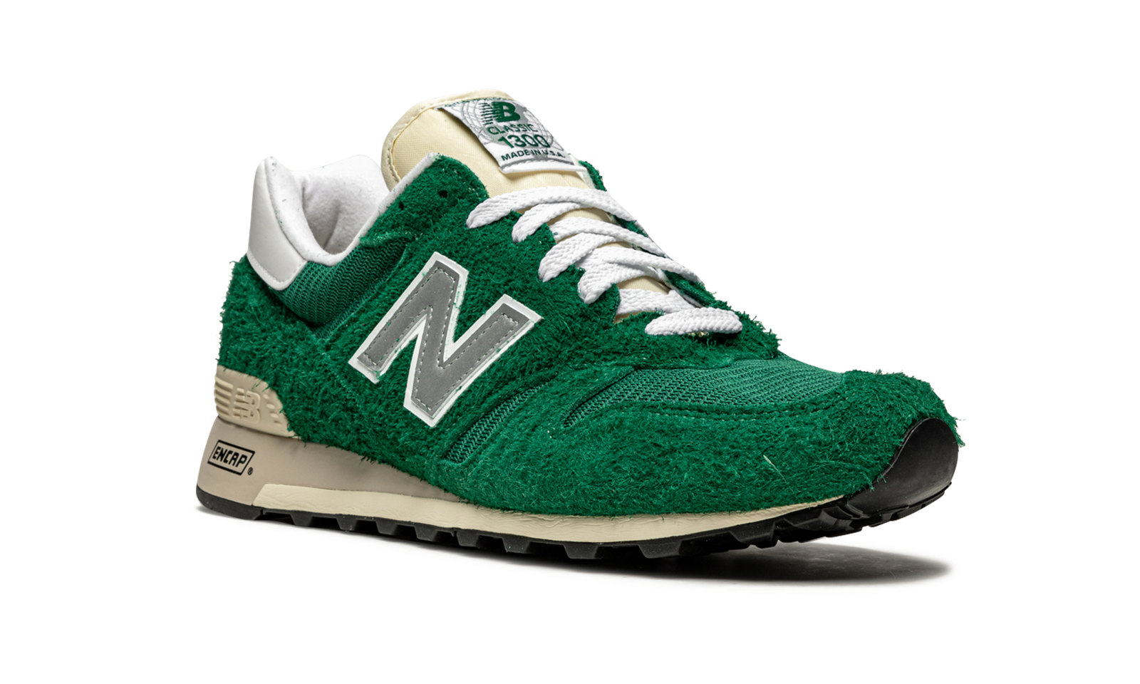 The Aime Leon Dore x New Balance 1300 “Green” is a continuation of the popular collaboration between the New York City streetwear and fashion brand and the heritage footwear manufacturer. One of two colorways designed by Teddy Santis, founder of Aime Leon Dore, the New Balance 1300 “Green” is highlighted by the model’s hairy green suede upper. Lightweight tonal mesh forms the base of the shoe and can be found on the toe, mid-panel, and collar. A light grey reflective “N” logo graces both sides of the shoe and white “New Balance” branding is embroidered on the heel. Green “New Balance” insignia dots the branding tag stitched onto the cream nylon tongue giving the shoe a decidedly retro look. The old school design vibes continue on the ivory midsole. ENCAP cushioning technology is embedded in the midsole and provides optimal comfort.
