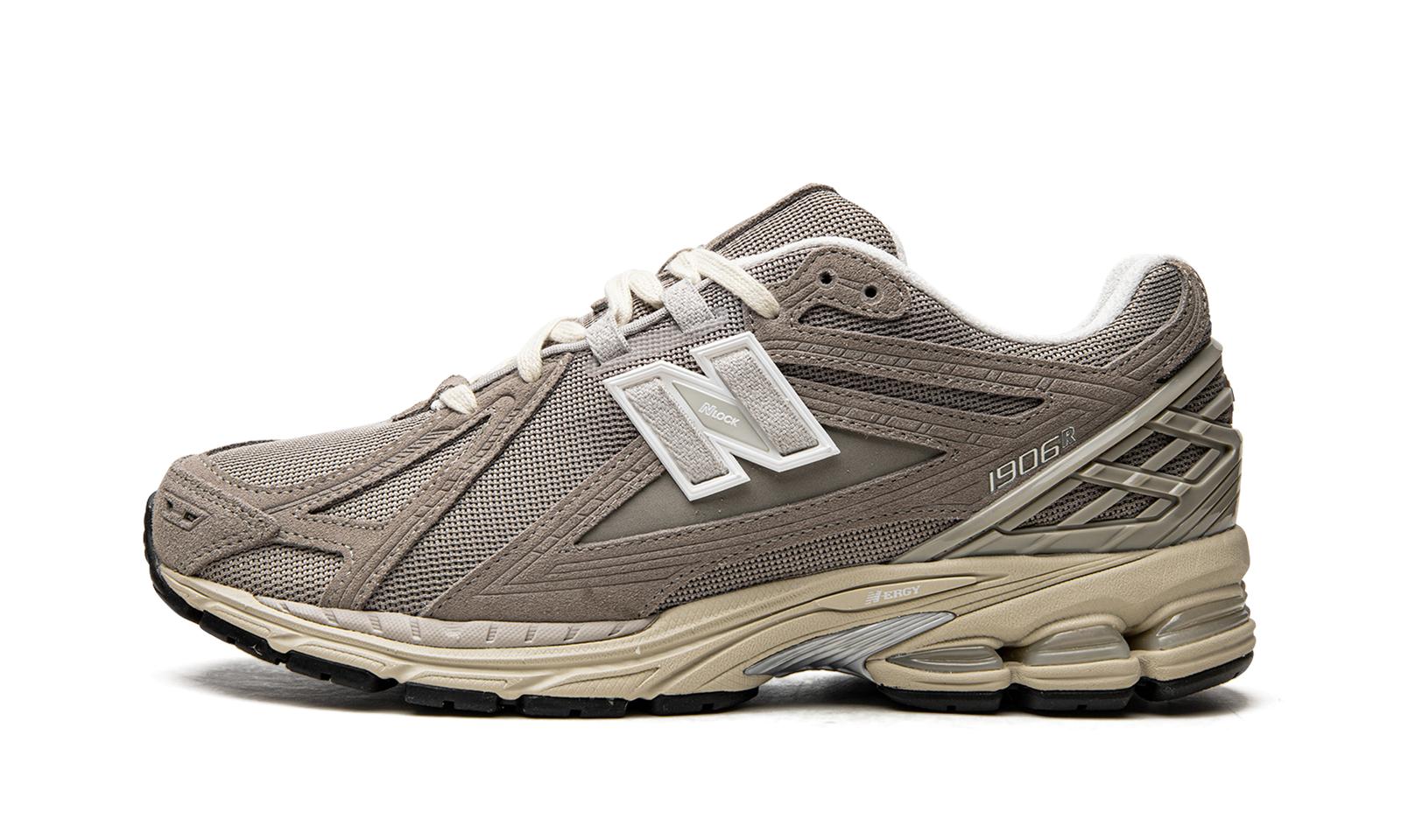The New Balance 1906R “Beige/Cream” is a neutral-based colorway of the lifestyle shoe with a retro-modern appearance. Inspired by 2000s-era performance running sneakers, the New Balance 1906 has both a throwback and contemporary design. The shoe features a beige mesh base while tonal suede overlays appear on the forefoot, mid-panel, and heel counter. A grey “N” logo can be found on both sides of the shoe. The shoe rides on a lightweight pre-aged, cream-colored N-ergy foam cushioned midsole.