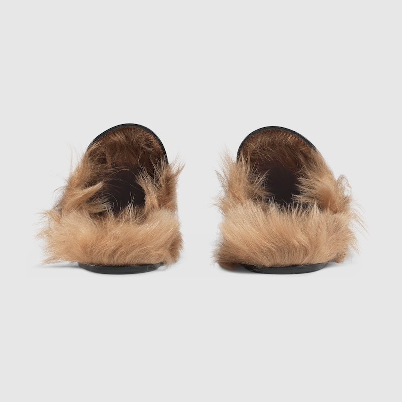 Emblematic looks are presented in the Ouverture collection and create a link to Gucci??s rich history. The Princetown slipper is fully lined and trimmed with wool then finished with the House’s signature Horsebit detail.