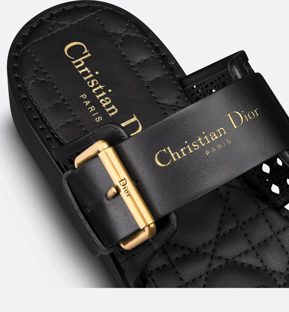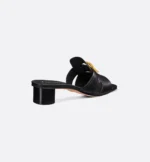 The 30 Montaigne heeled slide is an essential Dior wardrobe piece. The gold-finish metal CD signature highlights the silhouette and contrasts with the black calfskin. Featuring an elegant square toe and 3.5 cm (1.5-inch) cylindrical heel, the slide’s timeless lines will complete any attire with ease.