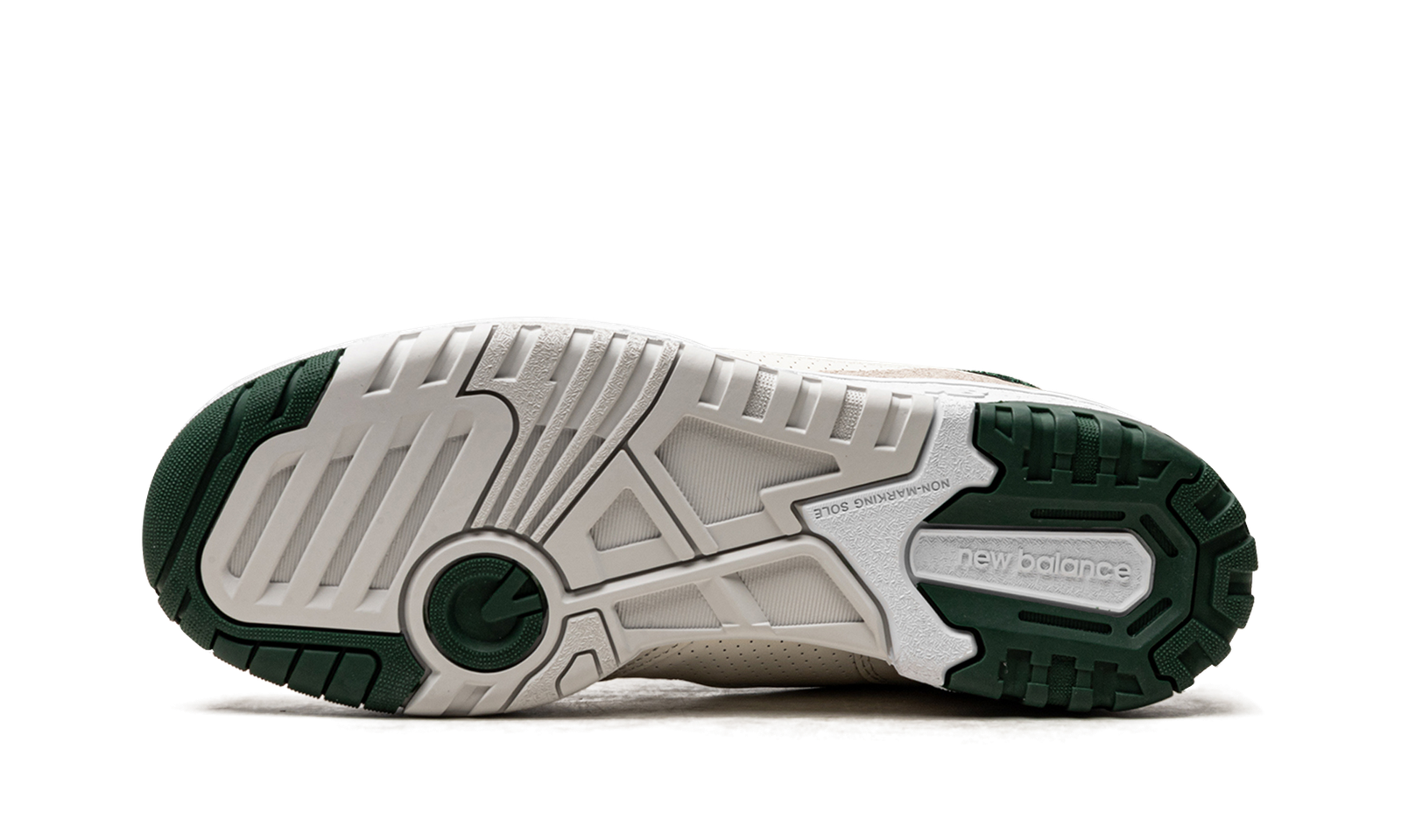 The New Balance 550 “Sea Salt/Pine Green” is a mostly two-tone, green-and-cream-colored version of the retro basketball shoe. The colorway features a Sea Salt leather upper with a Pine Green “N” logo on the side. Pine Green “550” branding appears on the lateral side of the forefoot and green “NB” branding is seen on the heel. A green suede overlay is found on the black mesh collar. Underfoot, the shoe rides on a white rubber midsole and a cream and green rubber outsole.