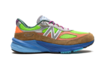 The Action Bronson x New Balance 990 V6 “Baklava” is a collaboration by the New York based hip-hop artist on the popular lifestyle shoe. Memorably worn by Action Bronson during his appearance at an AEW wrestling match in September 2022, the New Balance 990 V6 “Baklava” is the chef, rapper, and entertainer’s debut sneaker collaboration with the Boston footwear brand. The shoe features a neon yellow mesh base with a tan suede mudguard overlay. Contrasting reflective leather overlays are found on the toe and collar. Camel-colored leather paneling is located on the sides near the grey “N” branding. Dual branding is found on the insole. Underfoot, the shoe rides on a blue midsole. Release date: March 17, 2023