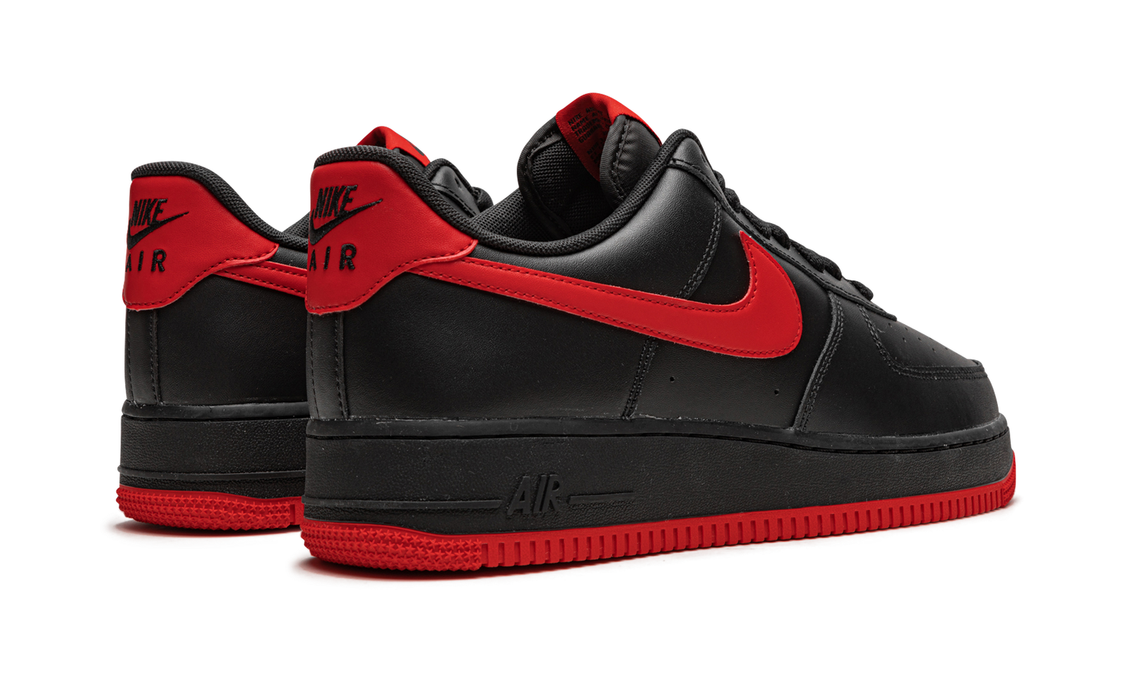 The Nike Air Force 1 Low “Bred” is a two-tone, red-and-black colorway of the casual lifestyle shoe that nods to the original Air Jordan 1 style of the same nickname. The origins of the “Bred” or black and red color story can be traced back to the Nike Air Ship “Banned” or “Bred” worn by Michael Jordan in 1984 with the Chicago Bulls. The shoe, which was outlawed by the NBA because it failed to comply with the league’s team uniform policy, was later a source of inspiration for the Air Jordan 1 “Bred,” and countless other shoes, like this Air Force 1, thereafter. The upper is constructed in black leather. A University Red leather Swoosh dots either side. A red leather heel tab with black “Nike Air” and Swoosh branding contrasts the neutral look of the upper. The University Red nylon tongue tag with black “Nike Air Force 1” and Swoosh detailing pops against the black nylon tongue. The two-tone, black-and-red look continues underfoot with a black rubber midsole with “Air” branding on the heel and a University Red outsole. Release date: September 7, 2021