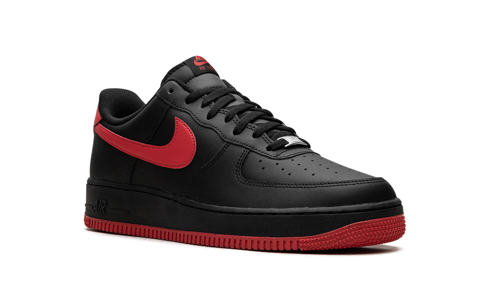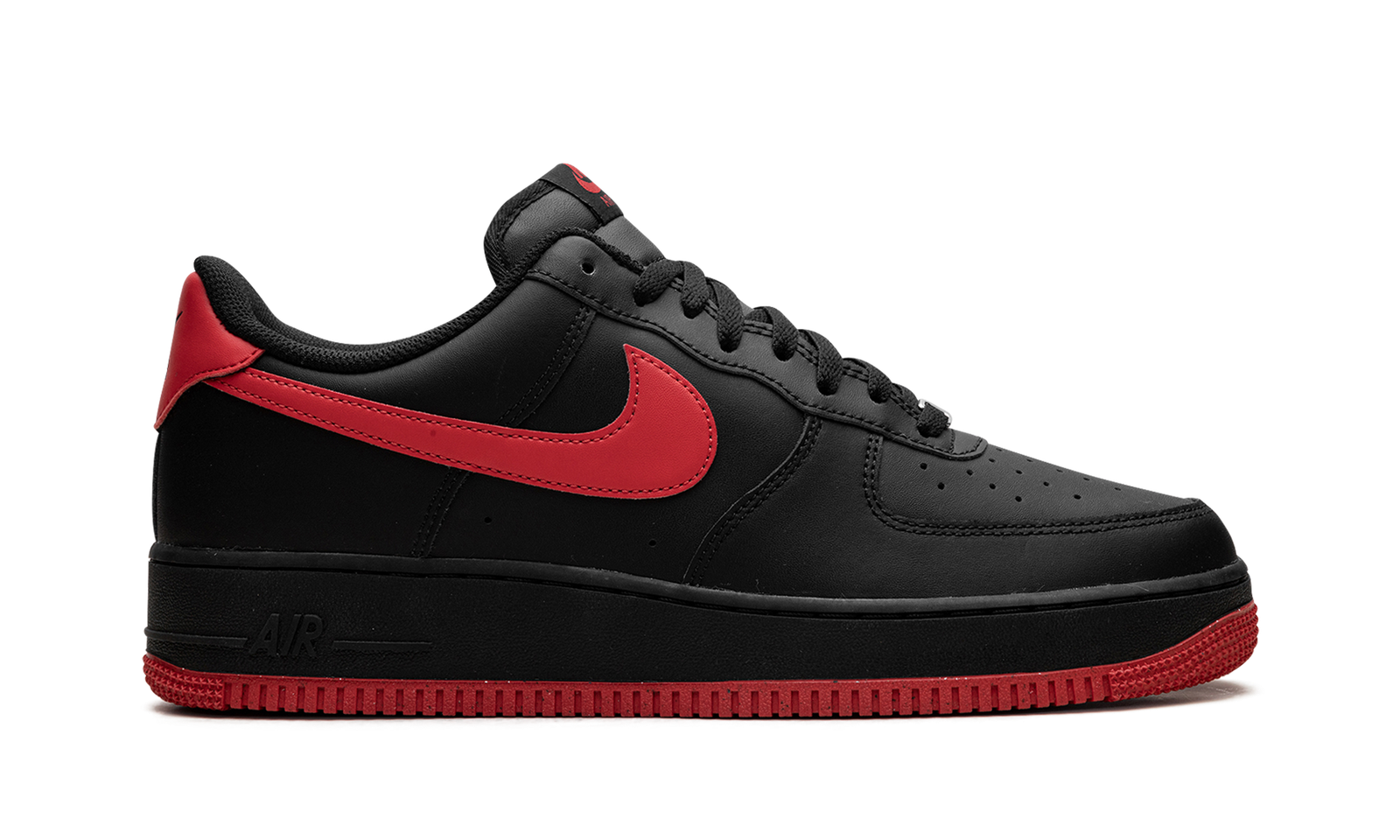 The Vamps Air Force 1 Low ’07 LV8 by Nike features a black-suede upper paired with contrasting deep red on the sole, heel, and side Swoosh. The low-top design incorporates perforations on the toe box for breathability and a padded collar for comfort. On the side of the heel of the midsole, there’s a raised “Air” logo in black. The durable rubber outsole and heritage-inspired design are a nod to Nike’s rich basketball history.