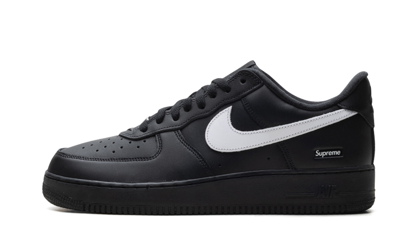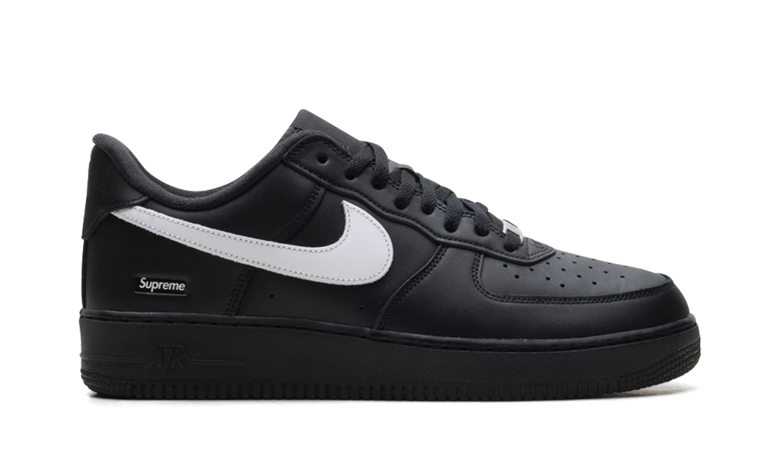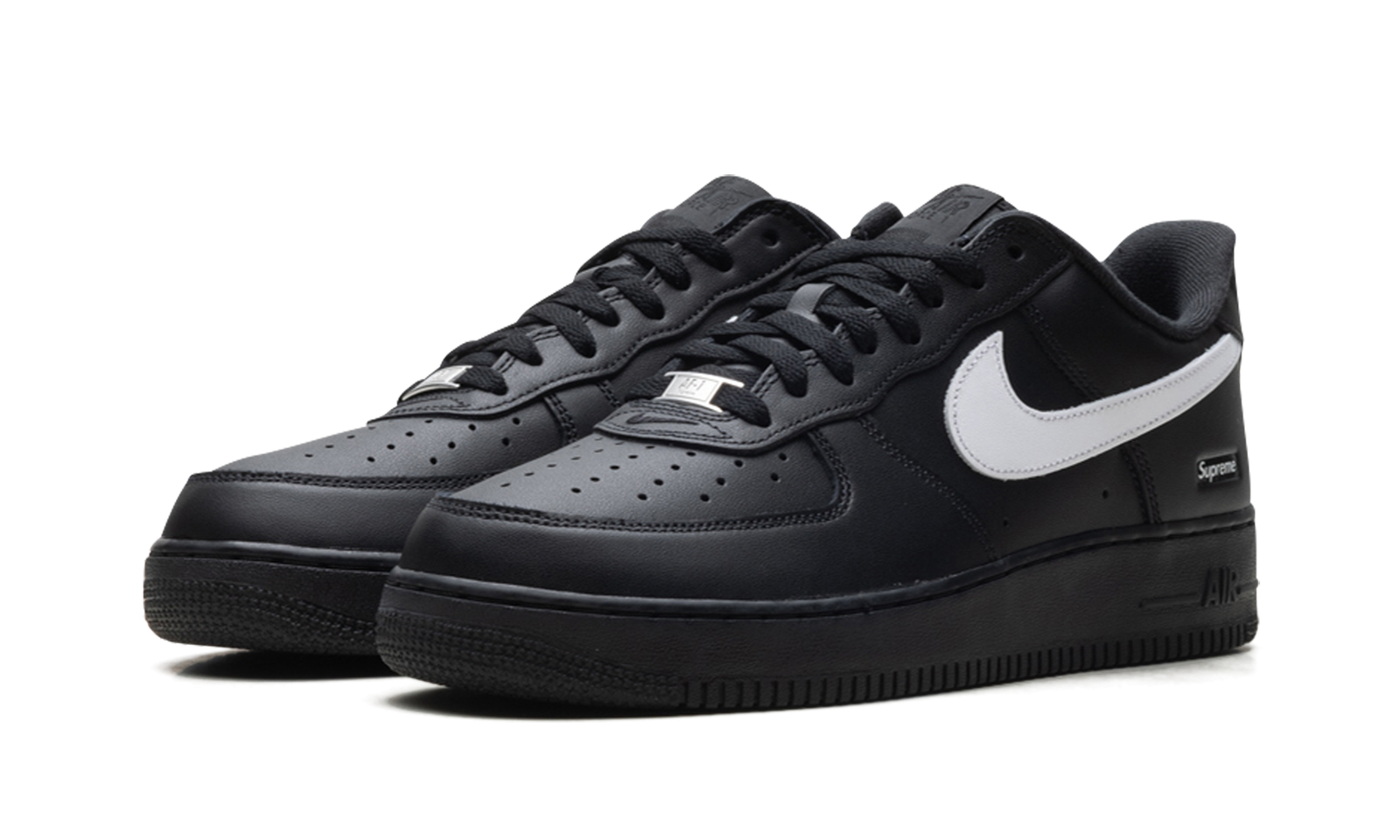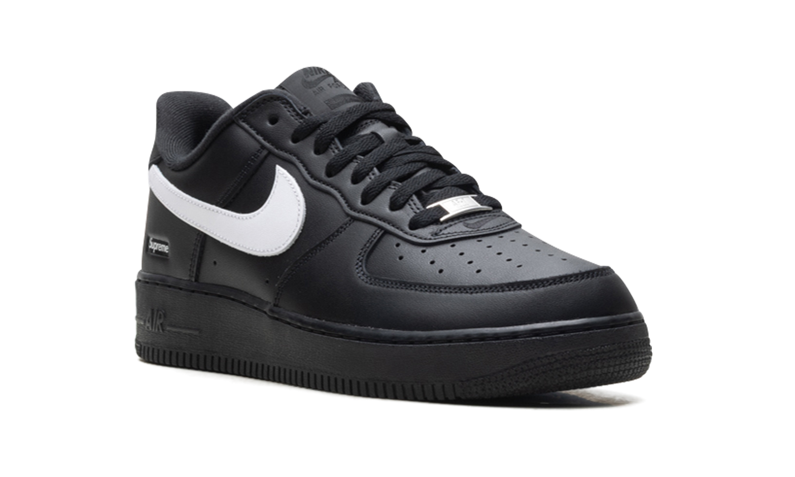 The Supreme x Nike Air Force 1 Low is the ultimate convergence of streetwear royalty and sneaker history. This black and white iteration takes the essential, universally loved Air Force 1 silhouette and elevates it with the subtle, yet powerful, branding of the New York skate legend, Supreme.