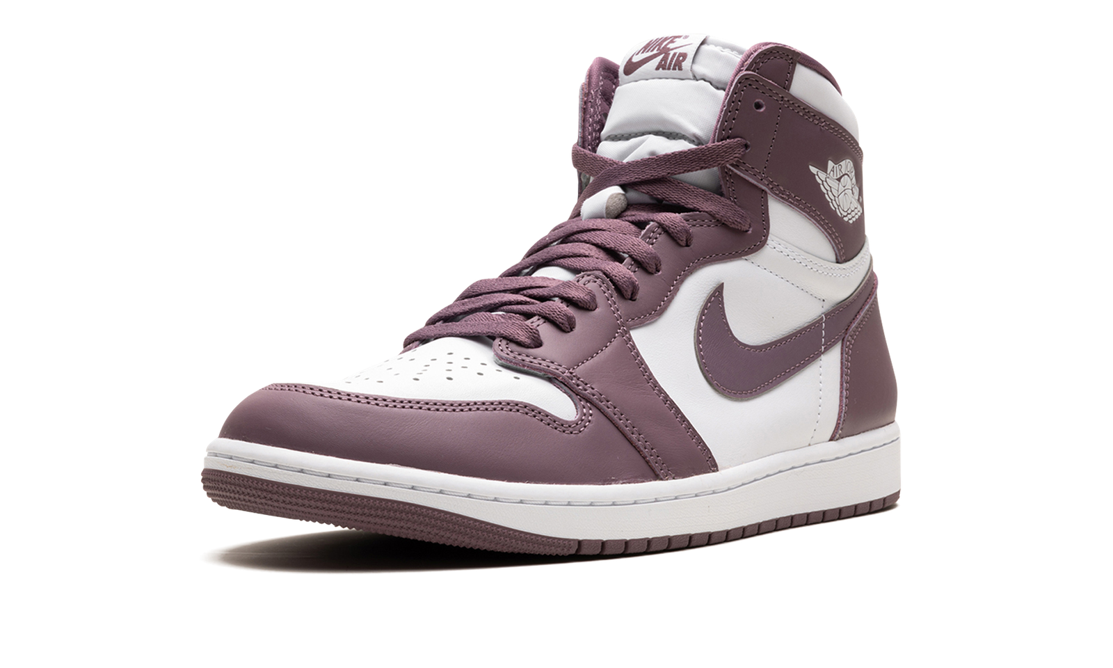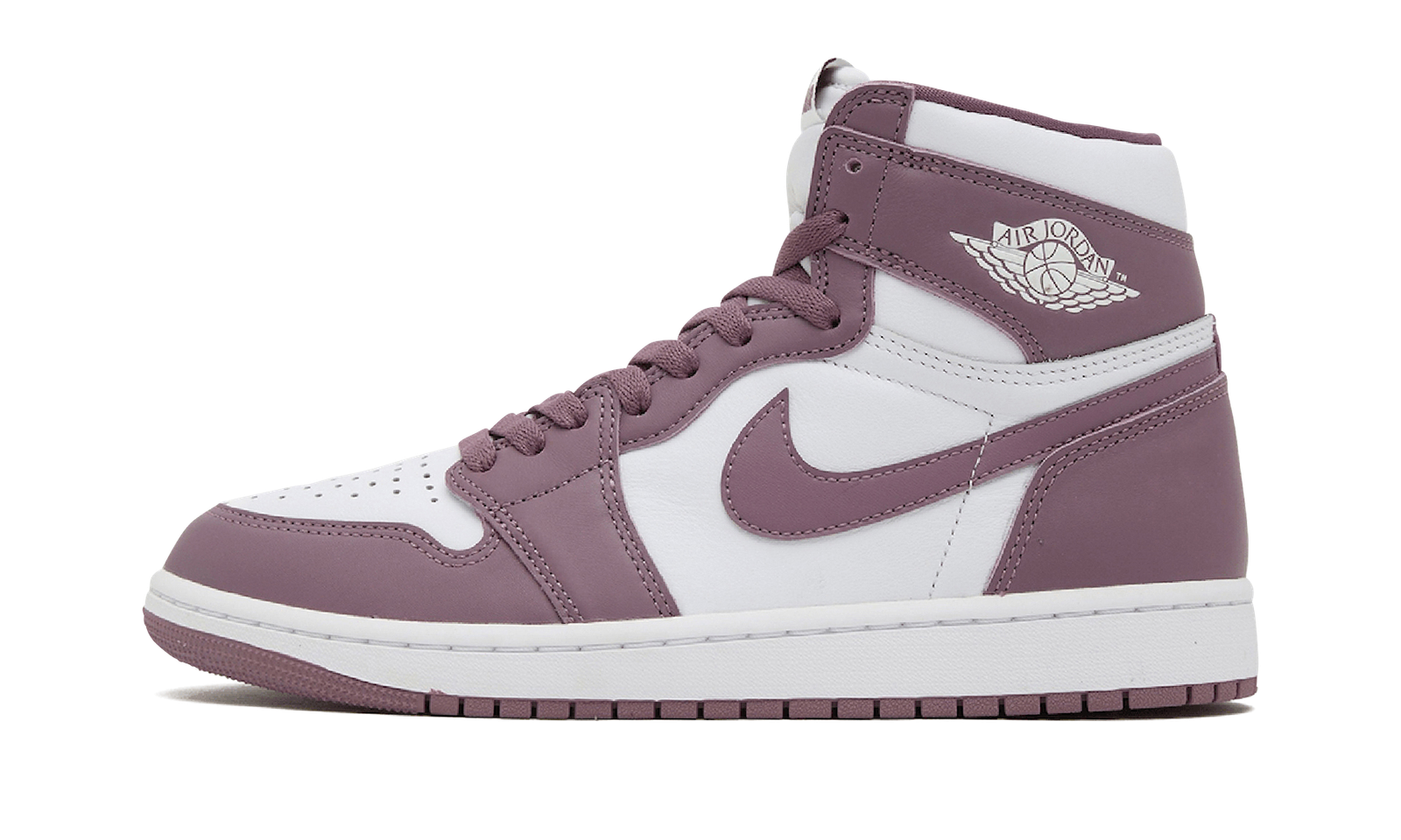 The Air Jordan 1 High OG “Mauve” is a colorway of the retro basketball shoe with an autumn-inspired design. From Jordan Brand’s Fall 2023 collection, the Jordan 1 High OG “Mauve” features a white leather base that’s contrasted with Mauve, or muted purple, leather overlay panels on the toe, forefoot, eyelets, collar, and heel. A Mauve leather Swoosh can be seen on each side of the shoe. “Wings” branding is found on the collar and “Nike Air” and Swoosh logos appear on the tongue tag. Underfoot, a white midsole and Mauve outsole complete the look. Release date: October 14, 2023