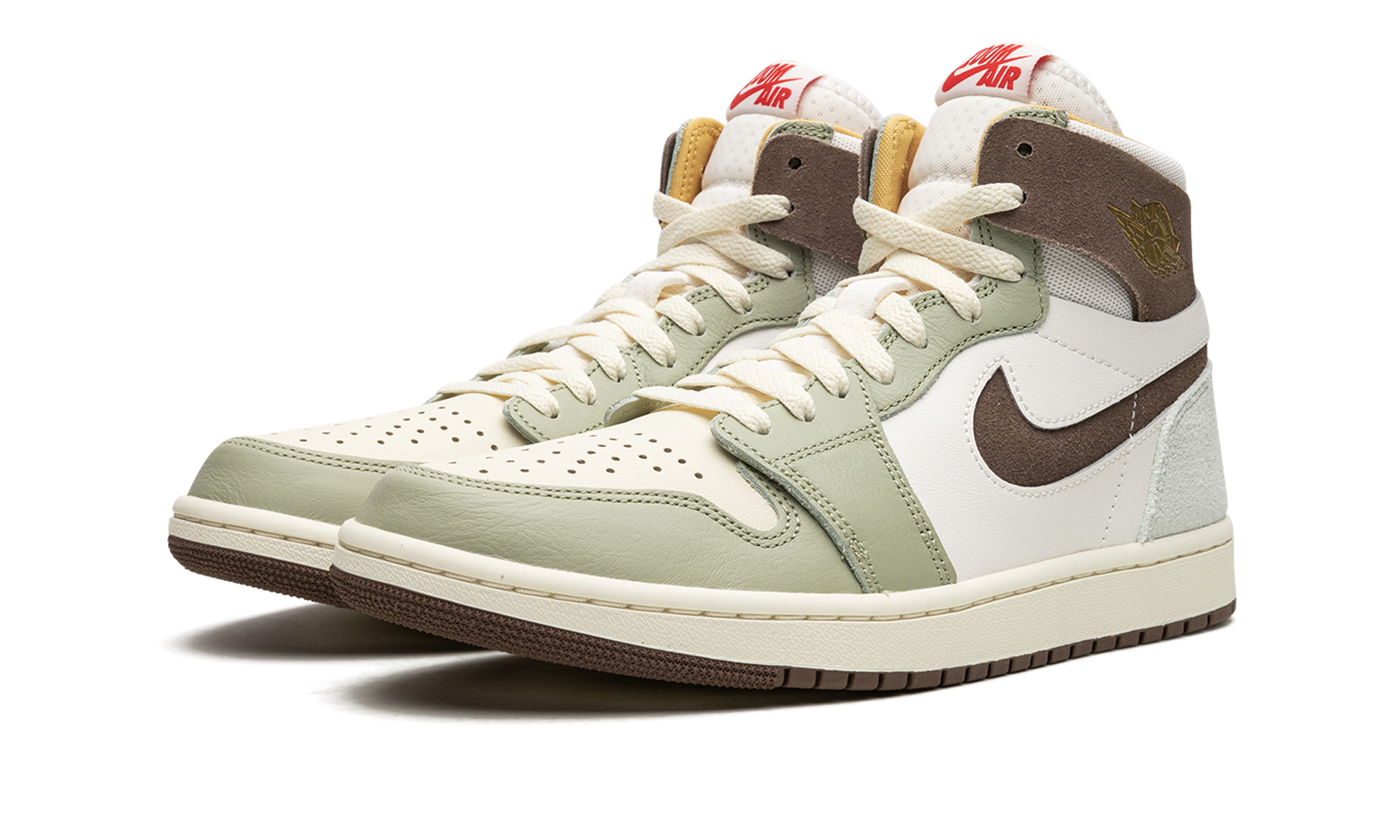 The Air Jordan 1 High Zoom CMFT “Year of the Rabbit” is a colorway of the alternate, modern version of the retro basketball shoe that celebrates Lunar New Year. Equipped with Nike’s Zoom Air cushioning technology and a beefy, padded ankle collar, the Jordan 1 High Zoom Comfort is a more comfortable, lifestyle-focused version of the legendary Jordan 1. As for the “Year of the Rabbit” colorway, the shoe nods to the Lunar New Year holiday on its design. The shoe features an Ivory-colored perforated leather toe box with mint green leather overlays on the toe cap, forefoot, and eyelets. A light blue suede overlay appears on the heel. Brown suede is featured on the Swoosh and collar. “Zoom Air” branding is displayed on the tongue tag and a “Wings” logo can be found on the collar overlay.