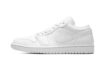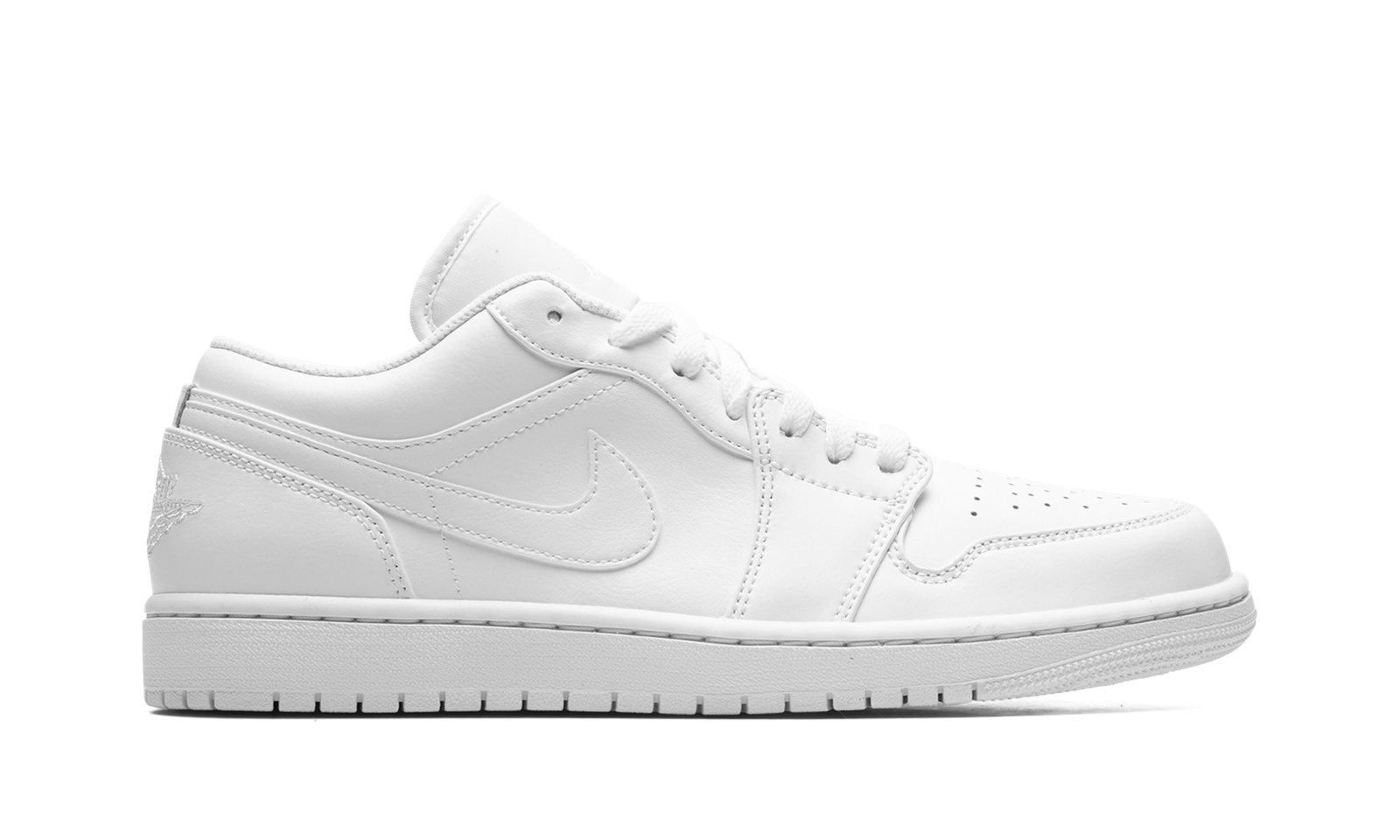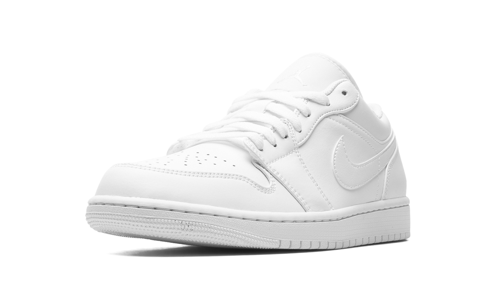 The Air Jordan 1 Low “Triple White” is a crisp, monochromatic white colorway of the classic low-top sneaker. The design features a white leather construction with tonal leather overlays and Swoosh branding on the sides. A white embroidered “Wings” logo is found on the heel and a white Jumpman is stitched on the tonal leather tongue. A white rubber sole completes the all-white-everything look. Release date: September 1, 2022