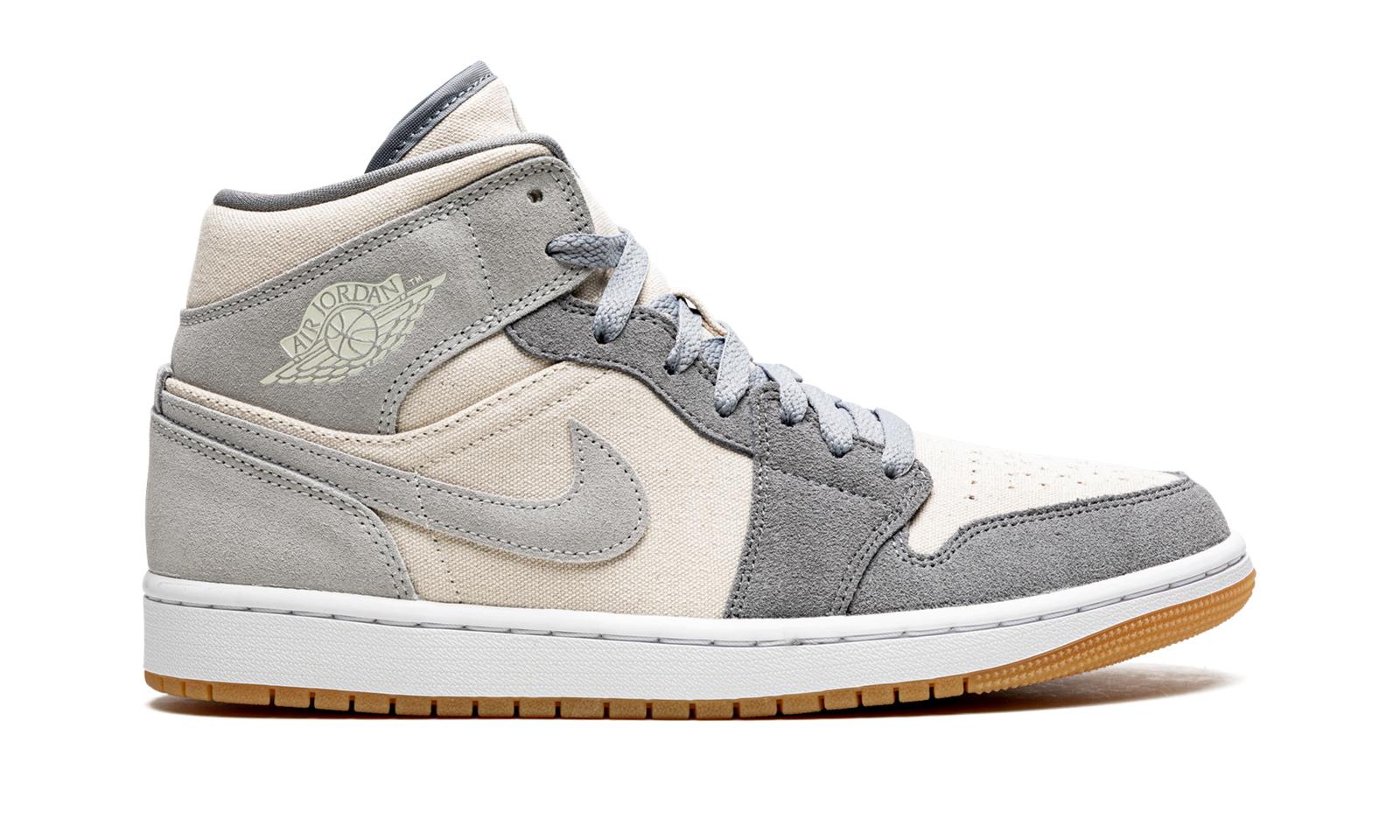 The Air Jordan 1 Mid SE “Coconut Milk” is a versatile look for the mid-top version of Michael Jordan’s first signature shoe that combines a cream-colored base with grey suede overlays. From Jordan Brand’s Spring 2022 collection, the “Coconut Milk” colorway features a coconut-colored canvas base with contrasting Particle Grey suede overlay panels and Swoosh branding. A classic “Wings” logo appears on the collar. A Particle Grey Jumpman with “Air” branding is embroidered on the top of the Coconut Milk canvas tongue. Both the laces and interior lining are designed in grey. Underfoot, the white rubber midsole is matched to a gum-colored outsole to complete the look.