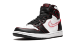 The Air Jordan 1 High “Defiant” is a unique colorway of the iconic model featuring “unstitched” Swooshes on the lateral sides. The eye-catching construction features a black and white leather upper with red contrast stitching throughout, including for the deconstructed stitching that makes the shape of the Swoosh, intended to appear as if the leather Swoosh was cut off. Intact yellow leather Swooshes are found on each medial side. A black leather tongue and Air Jordan “wings” logo patches complete the distinct colorway. The Air Jordan 1 High “Defiant” with unstitched Swooshes released in July 2019.