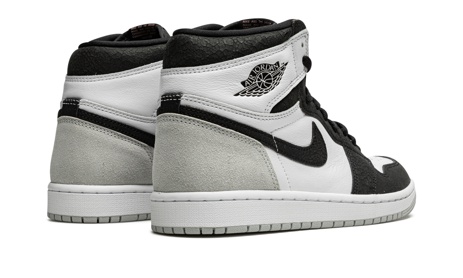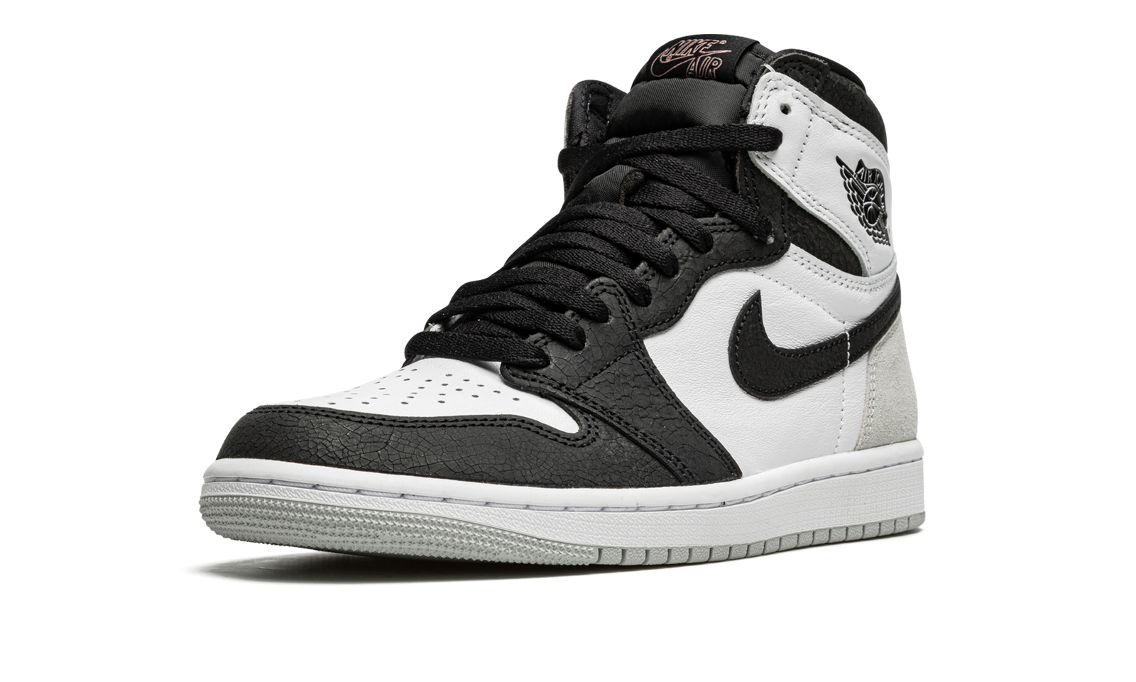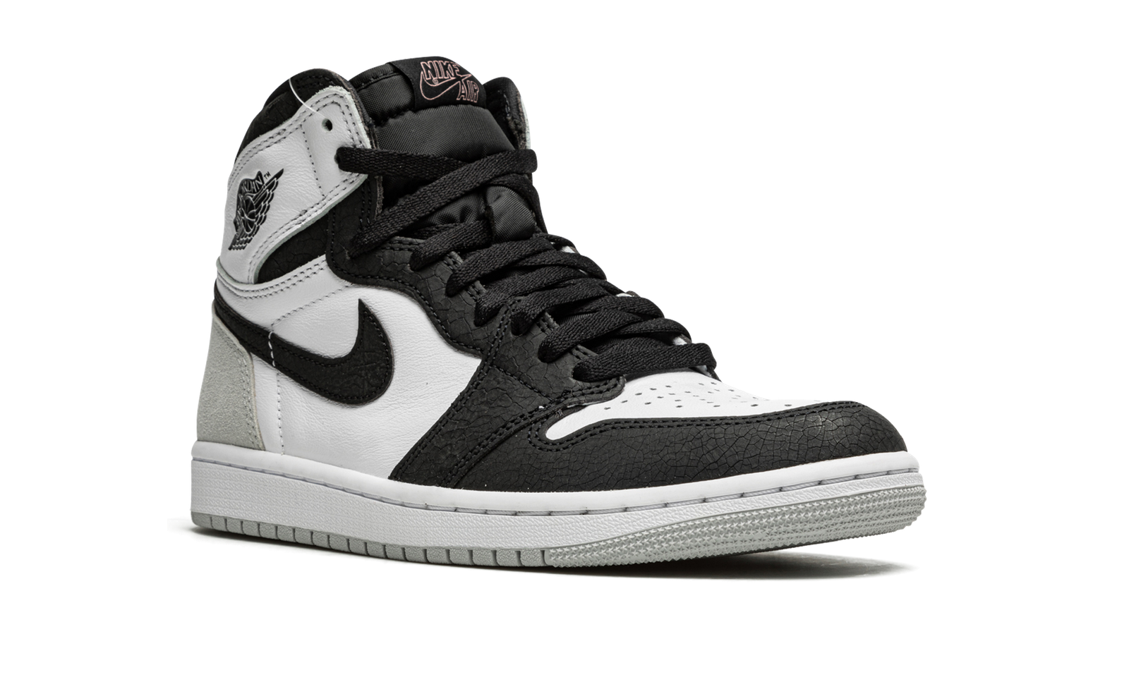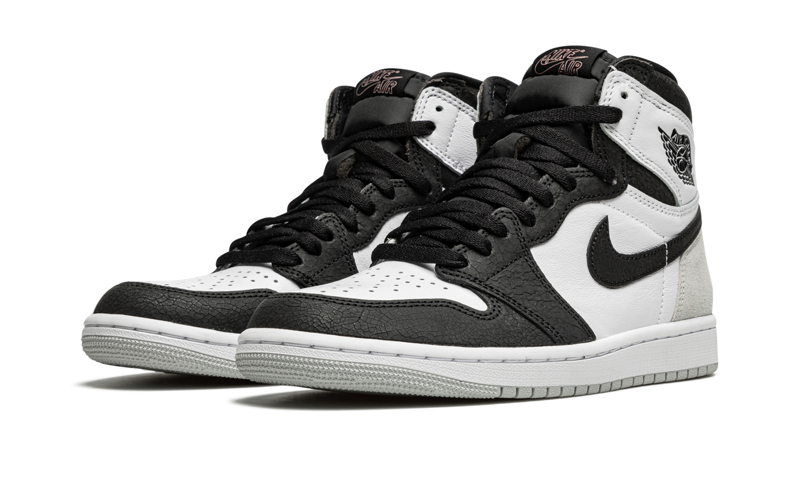 The Air Jordan 1 High OG “Stage Haze” is a versatile colorway of Michael Jordan’s first signature shoe that features neutral-colored panels for a clean look. The Jordan 1 High OG in “Stage Haze” is a wear-with-anything proposition, and one of the standout releases from Jordan Brand’s Spring 2022 collection. It features a white leather base with black textured overlays and Swoosh branding on the sides. A classic “Wings” logo is found on the white leather overlay on the collar. The heel counter is designed in grey suede. A pink outline “Nike Air” logo is paired with a Swoosh hit on the black tongue tag on the black nylon tongue.