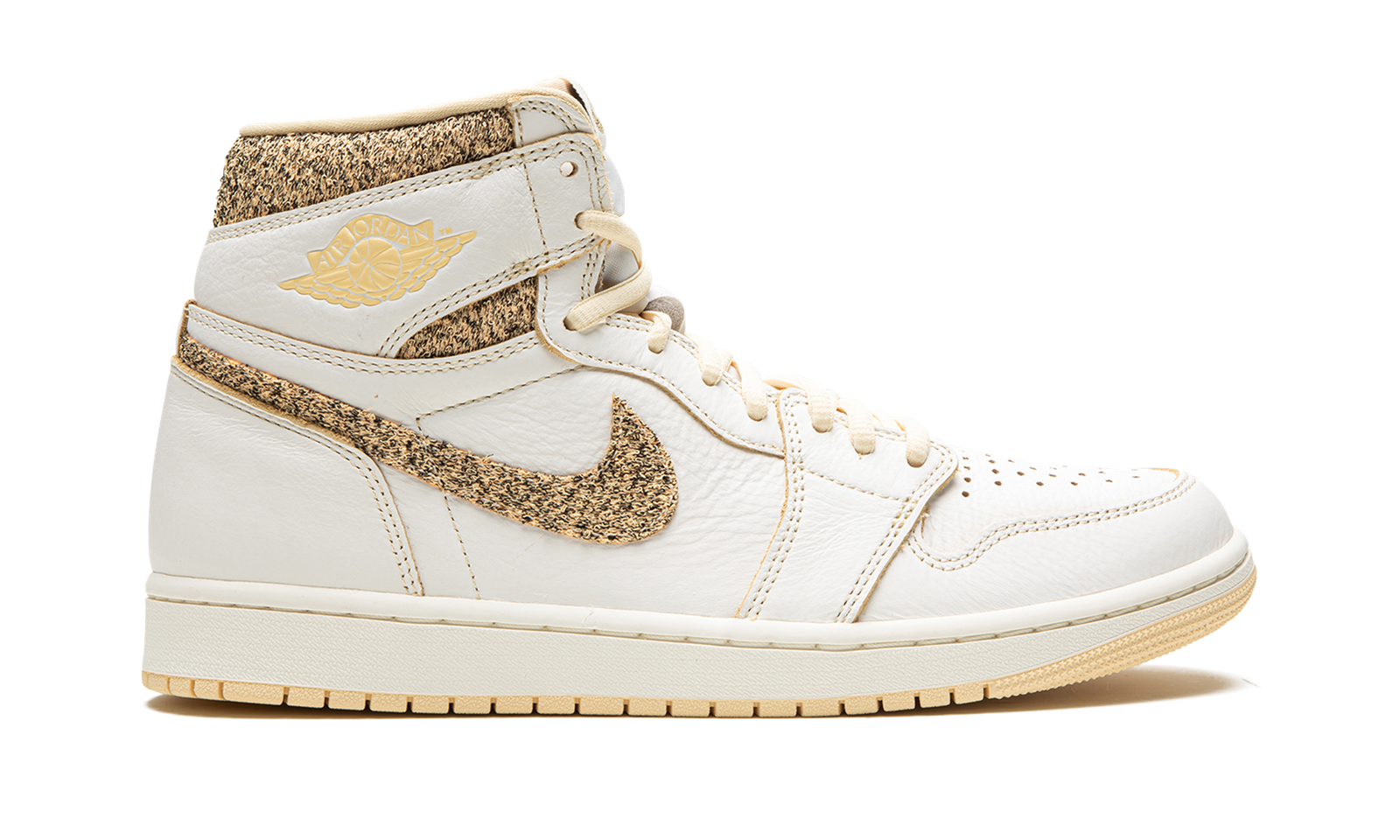 The Air Jordan 1 High OG “Vibrations of Naija” is a special colorway of the retro basketball shoe that is influenced by Nigerian designs. Jordan Brand continues to take inspiration from global sources as it outfits the Air Jordan 1 in colorways inspired by Lunar New Year and more. Here, the “Vibrations of Naija” explores a design concept inspired by traditional Nigerian art and culture. The shoe features a white leather construction with a unique textile Swoosh on the side. The same textured material that is found on the Swoosh also appears on the collar. A slightly yellowed midsole gives the colorway an aged look. Release date: May 27, 2023