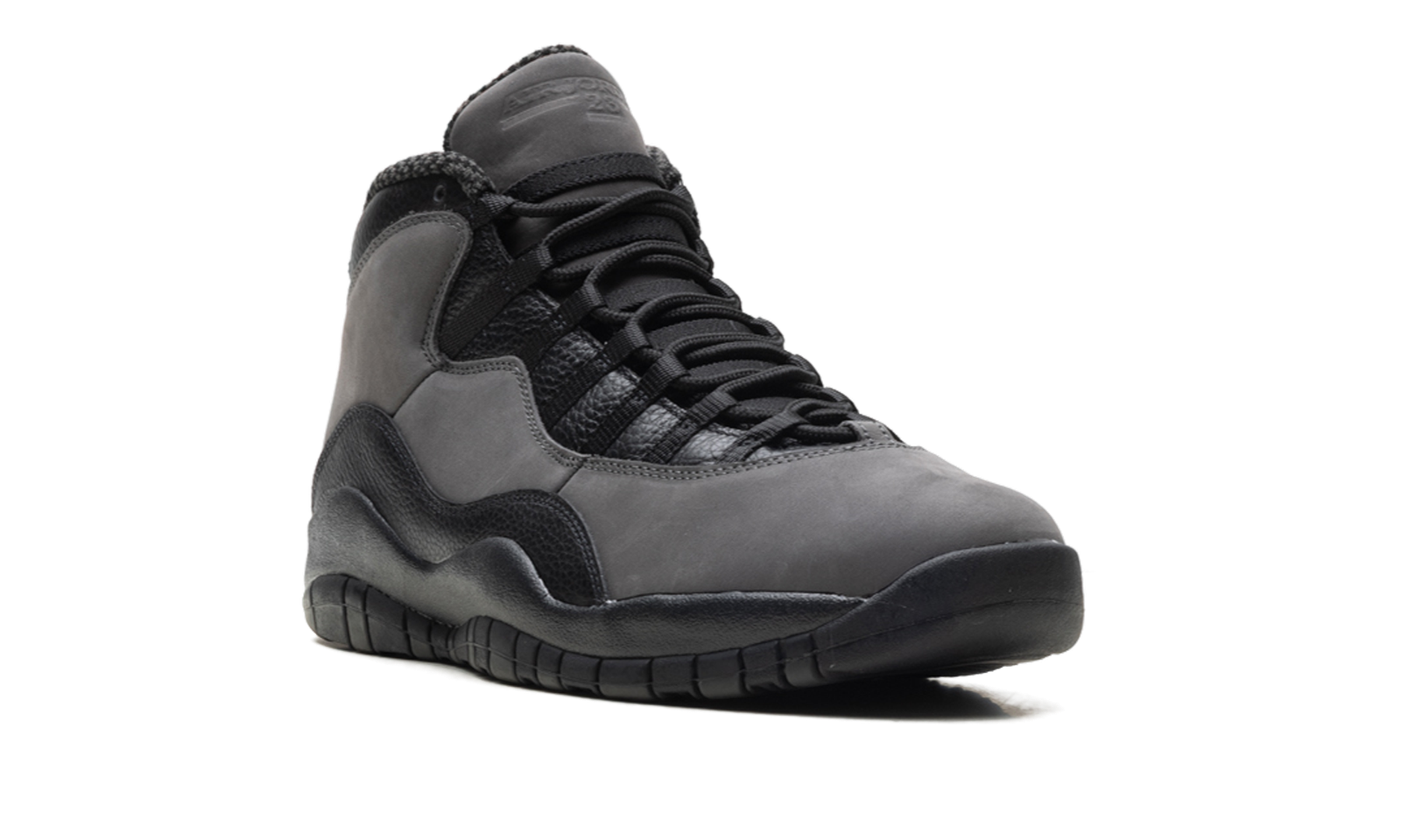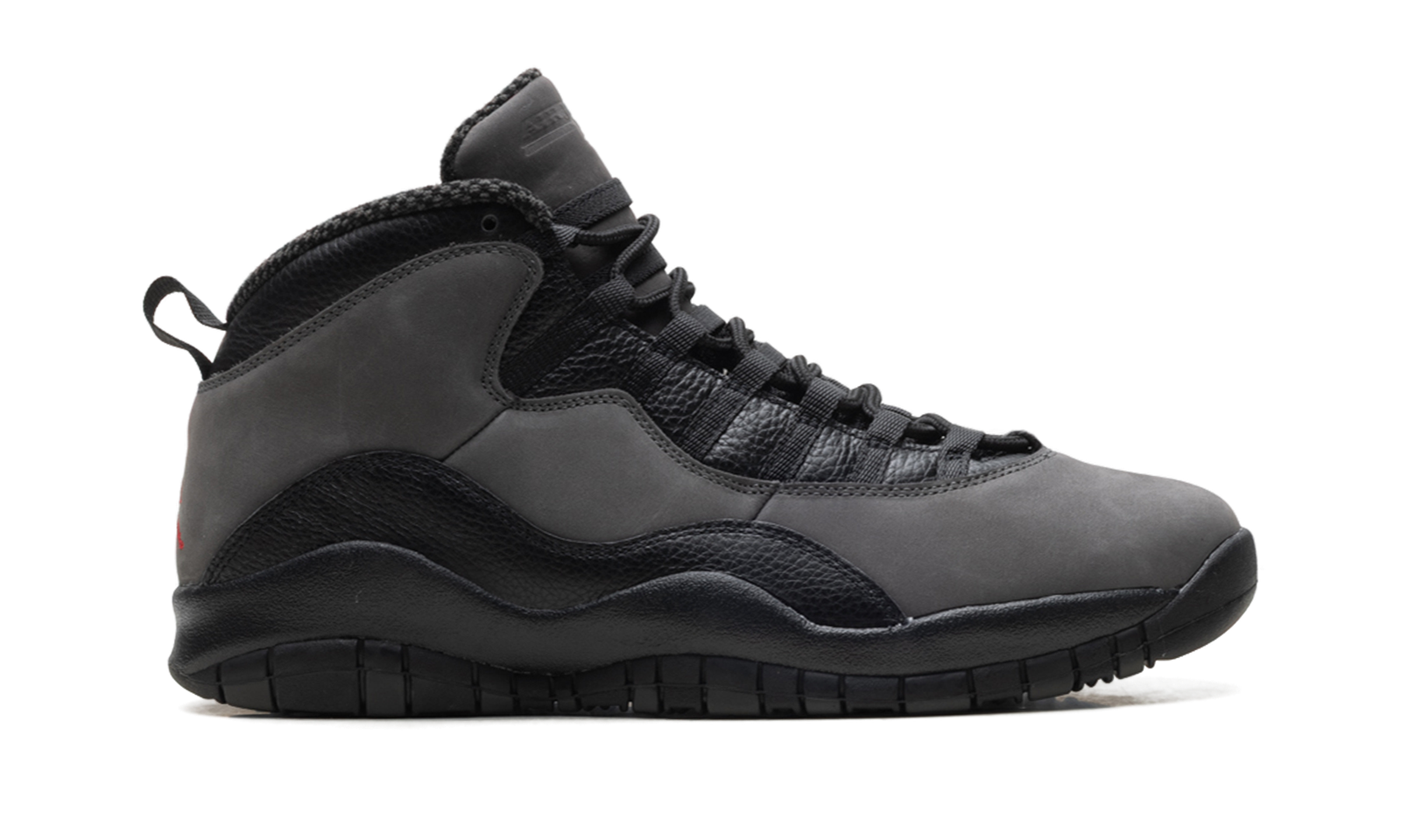 Step into a classic with the Air Jordan 10 Retro “Shadow.” This celebrated silhouette features a premium black leather upper accented by a dark grey midsole and subtle tonal details. Experience comfortable Air cushioning and a versatile look, perfect for making a bold statement with a sophisticated edge. The outsole lists MJ’s early career accomplishments.