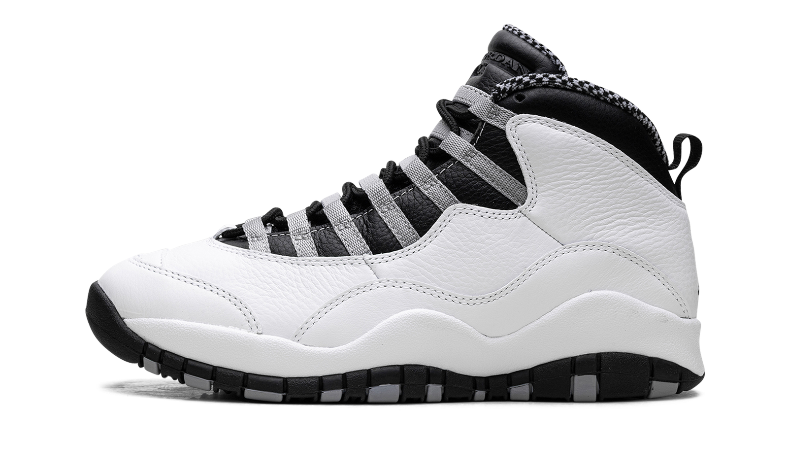 Elevate your sneaker game with the Air Jordan 10 “Steel.” This iconic shoe offers a blend of heritage design and clean appeal, highlighted by its sharp grey and black details against a white base. It’s a stylish and comfortable choice for any fan who appreciates classic Jordan aesthetics.