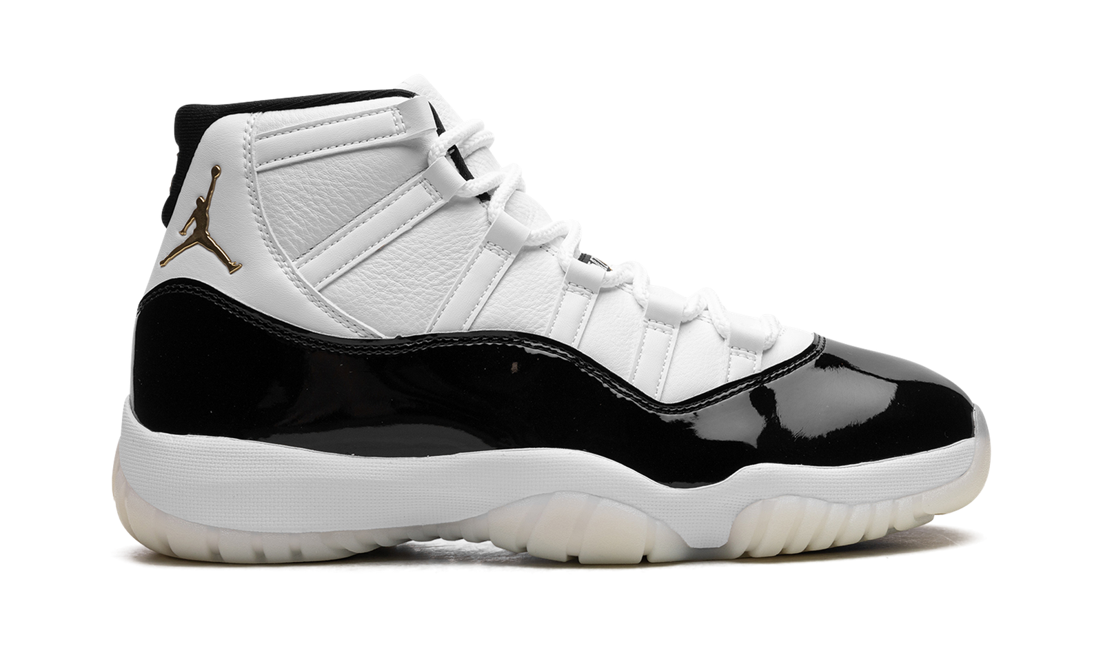 The Air Jordan 11 “Gratitude” is the modern re-release of the colorway of Michael Jordan’s eleventh signature shoe that originally released as part of the “Defining Moments Pack” from 2006. Also nicknamed the “DMP 2023” colorway, this Jordan 11 is based on the retro basketball sneaker’s original “Concord” colorway that was worn by Jordan with the Chicago Bulls throughout the team’s historic run during the 1995-96 NBA season. The upper features a white leather construction, instead of the original DMP colorway’s ballistic mesh build. A glossy black patent leather mudguard contrasts the shoe’s neutral base. Metallic Gold Jumpman branding is found on the collar while “Jumpman” detailing appears across the white mesh tongue. Underfoot, the white foam midsole and translucent rubber outsole complete the look. Release date: December 9, 2023
