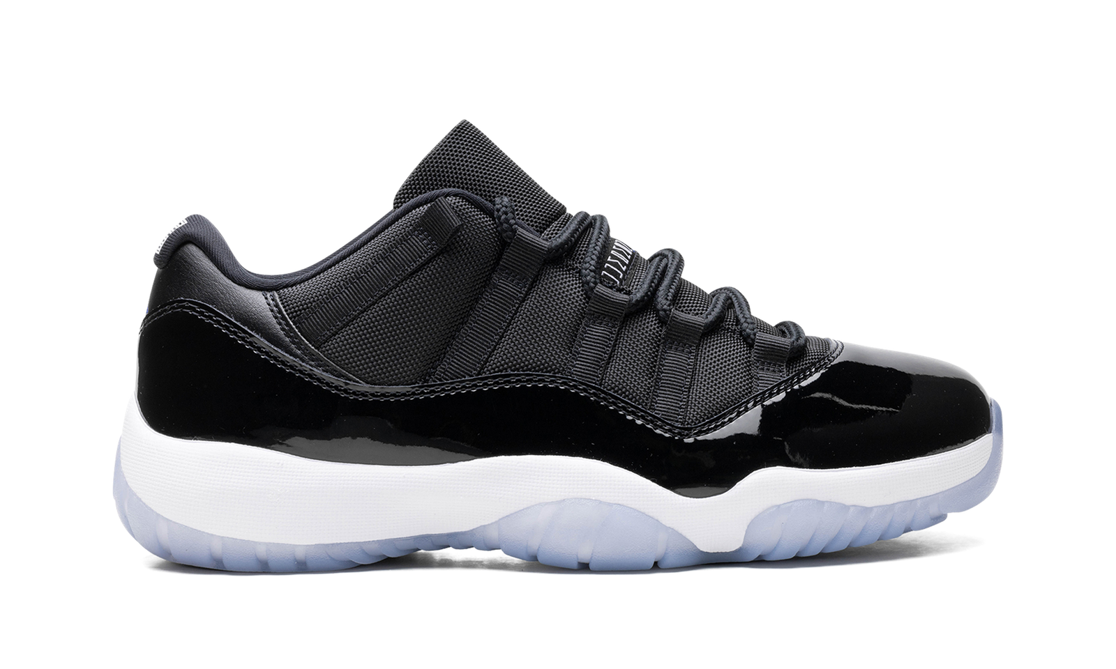 The Air Jordan 11 Low “Space Jam” is the beloved colorway of the retro basketball sneaker that originally appeared on the model’s high-top shoe beginning in 2000. The Jordan 11 Low “Space Jam” signals the first time the iconic colorway has appeared on Michael Jordan’s eleventh signature shoe in low-top form. Just like the original style, the Jordan 11 Low features a black ballistic mesh construction and shiny black patent leather mudguard. “Jordan Jumpman” detailing is seen on the black mesh tongue. A small Jumpman is seen in white on the heel. Underfoot, the white foam midsole and icy translucent blue rubber outsole complete the look.