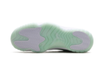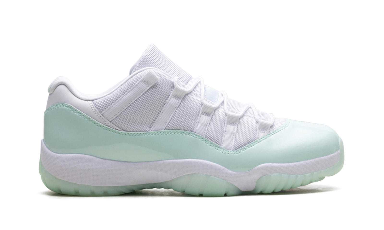 Step out in fresh style with the women’s Air Jordan 11 Low “Igloo.” The crisp white upper is beautifully contrasted by a vibrant Igloo green patent leather mudguard and a matching translucent outsole. This clean and striking colorway, combined with the AJ11’s unmistakable design, makes for a chic and eye-catching statement sneaker.