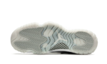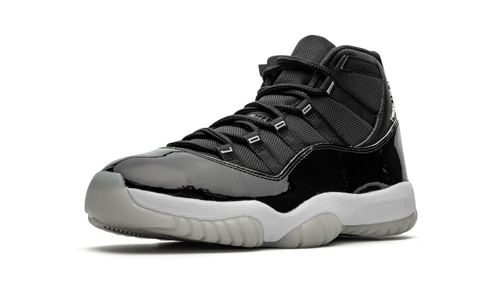 The Air Jordan 11 “Jubilee” honors the 25-year anniversary of Michael Jordan’s eleventh signature shoe by bringing to life an original design concept sketched by Tinker Hatfield in the ‘90s. The “Jubilee” borrows from the “Concord” and “Space Jam” colorways in that it features a predominately black and white appearance. The word “Jordan” is spelled out in Metallic Silver text along the side of the eyelets in reference to the original sketch of the shoe by Hatfield. A silver Jumpman emblem appears in the same premium finish on the collar. Black patent leather above the white midsole is a call back to the styling of the “Concord,” “Space Jam,” and “Bred” colorways. Release date: December 12, 2020.