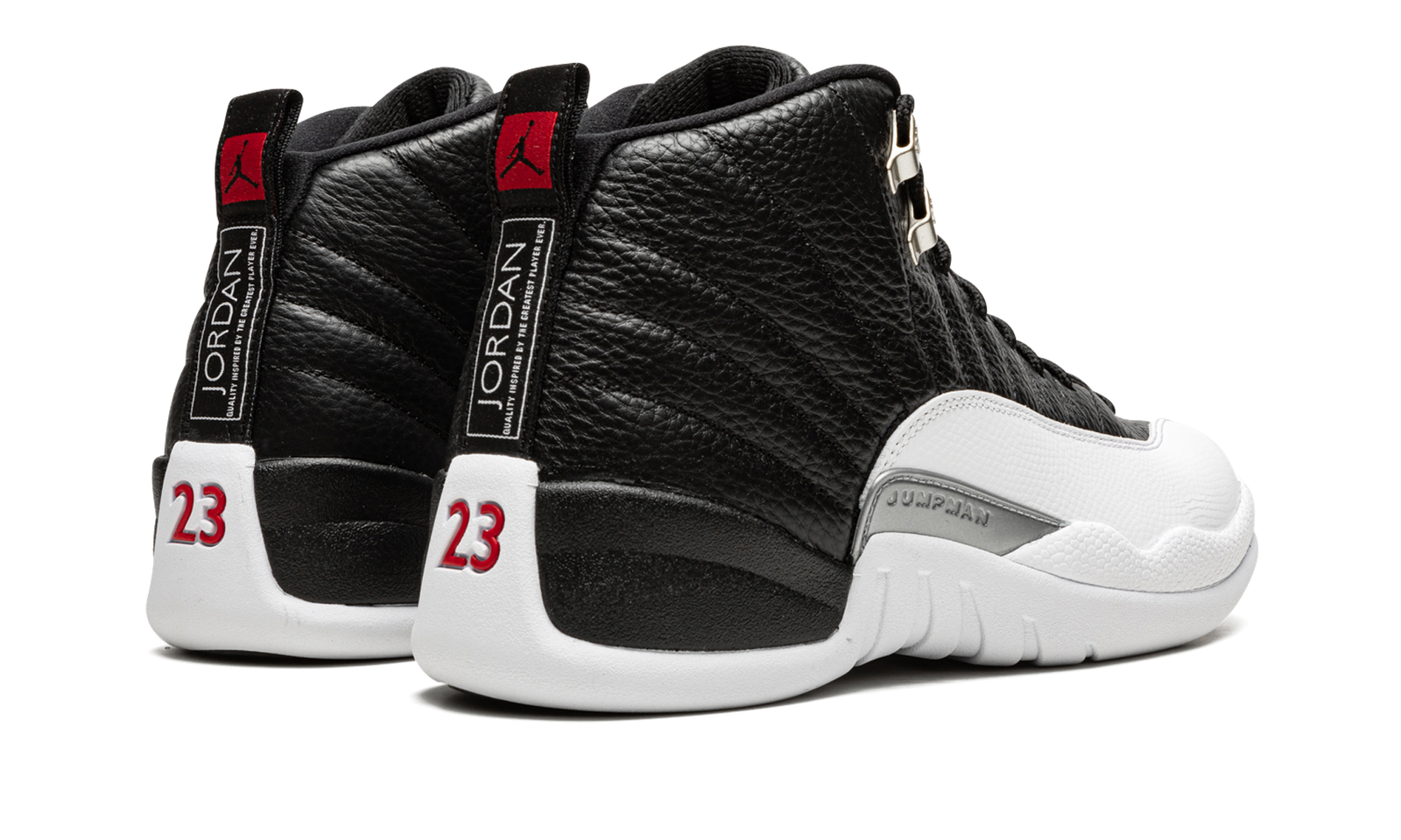 The Air Jordan 12 “Playoffs 2022” is a February 2022 release of an original colorway of the retro basketball shoe that was worn by Michael Jordan during the 1997 NBA Playoffs. An All-Star Weekend 2022 release, the Jordan 12 “Playoffs” celebrates the shoe’s 25-year anniversary in spectacular fashion as the modern incarnation of the shoe is a one-to-one remake of the original version from ‘97. The shoe features a black leather upper with contrasting Metallic Silver eyelets. Textured white leather is found on the toe, mudguard, and midsole. A silver “Jumpman” plate appears on the branding plate on the lateral side of the shoe. The black leather tongue displays a red embroidered Jumpman and “Two3” branding. Red “23” and “Jordan” branding can be found on the back of the black rubber midsole and heel, respectively. Overall, the February 2022 release of the Air Jordan 12 “Playoffs” is consistent with the original version from 1997. Release date: February 19, 2022