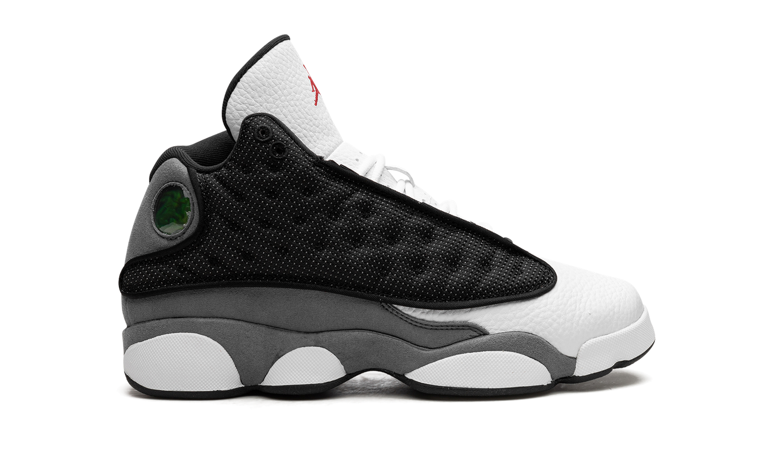The Air Jordan 13 GS “Black Flint” is the youth sizing for the colorway of the vintage basketball shoe that is loosely inspired by one of the model’s original releases. The shoe in question is the Jordan 13 “Flint,” which debuted in 1998 and is one of the most popular colorways of Michael Jordan’s thirteenth signature shoe. On the “Black Flint,” the shoe features the same color block as its predecessor, albeit in different colors. The design is complete with a black mesh upper that’s contrasted with grey suede overlays and a white leather toe. A holographic jewel appears on the lateral side of the collar. Classic Jumpman branding is found on the toe. Black rubber pods appear on the outsole mirroring that of a panther’s paw, which the original Air Jordan 13 was inspired by. Release date: April 22, 2023