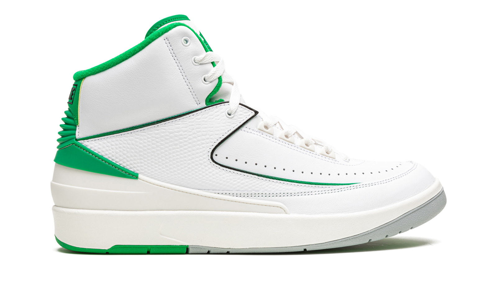 The Air Jordan 2 “Lucky Green” is a classic look for the retro basketball shoe that is loosely inspired by the Boston Celtics. The “Lucky Green” is not officially affiliated with the Celtics, but is nonetheless a nod to the storied basketball team as it features its white and green team uniform colors on its design. The Jordan 2 “Lucky Green” features a white leather base with tonal textured leather overlays. Lucky Green accenting can be found on the heel counter, interior, and on the “Wings” branding on the tongue. A cream midsole gives the shoe a vintage look. Release date: February 3, 2023