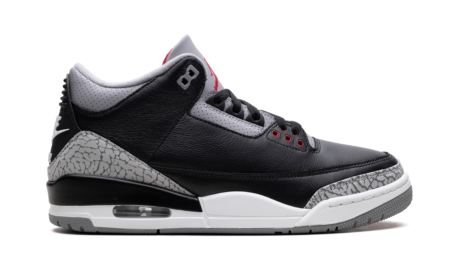 One of the most revered sneakers of all time, the Air Jordan 3 “Black Cement” is getting a retro release for Holiday 2024. This “Black Cement” AJ3 pays faithful tribute to the original Jordan 3 that first came out in 1988. The Jordan 3 “Black Cement” features tumbled black leather and the iconic elephant print on the panels of the upper. And the “Nike Air” branding that purists love is featured on the heel.