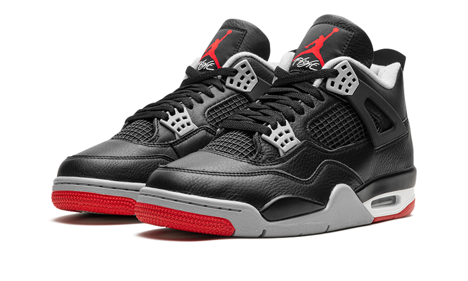 The Air Jordan 4 “Bred Reimagined” is an iconic and original colorway of the fourth Air Jordan sneaker that replicates the model’s original design. The “Bred Reimagined” was released by Jordan Brand in February 2024 to celebrate the legendary Jordan 4’s 35th anniversary. Dressed in the same color block as the original version from 1989, the “Bred Reimagined” mimics the look of the OG Jordan 4 “Bred” with accurate-to-original panels, colors, and overall shape. However, the design does differ from the original “Bred” Air Jordan 4 by featuring a tumbled leather upper instead of the OG’s nubuck construction. Cement Grey plastic eyelets contrast the look on the front of the shoe. On the back, Cement Grey “Nike Air” branding gives the sneaker a classic look. A red Jumpman and “Flight” branding in cursive appear on the tongue tag. A grey and white rubber midsole completes the look. Release date: February 17, 2024