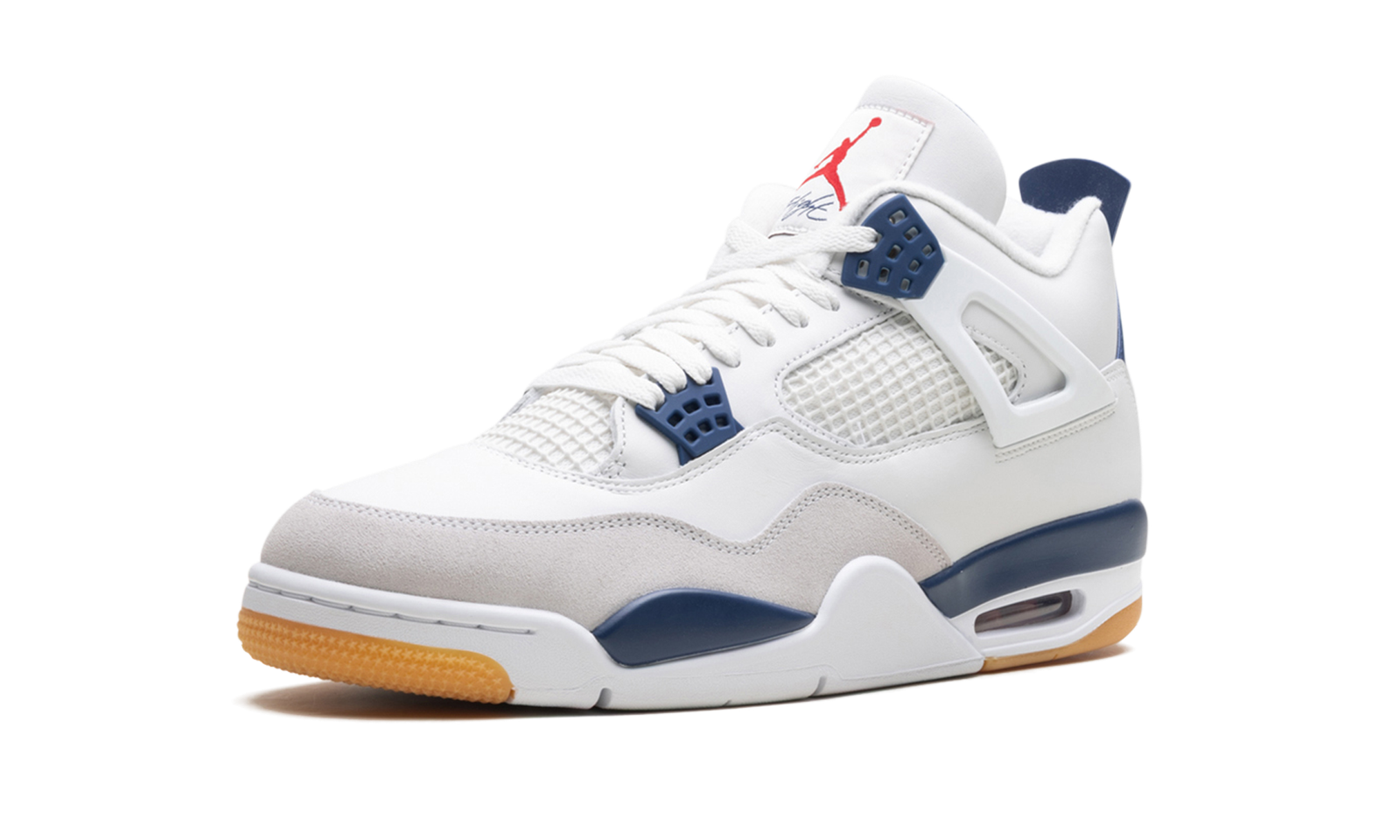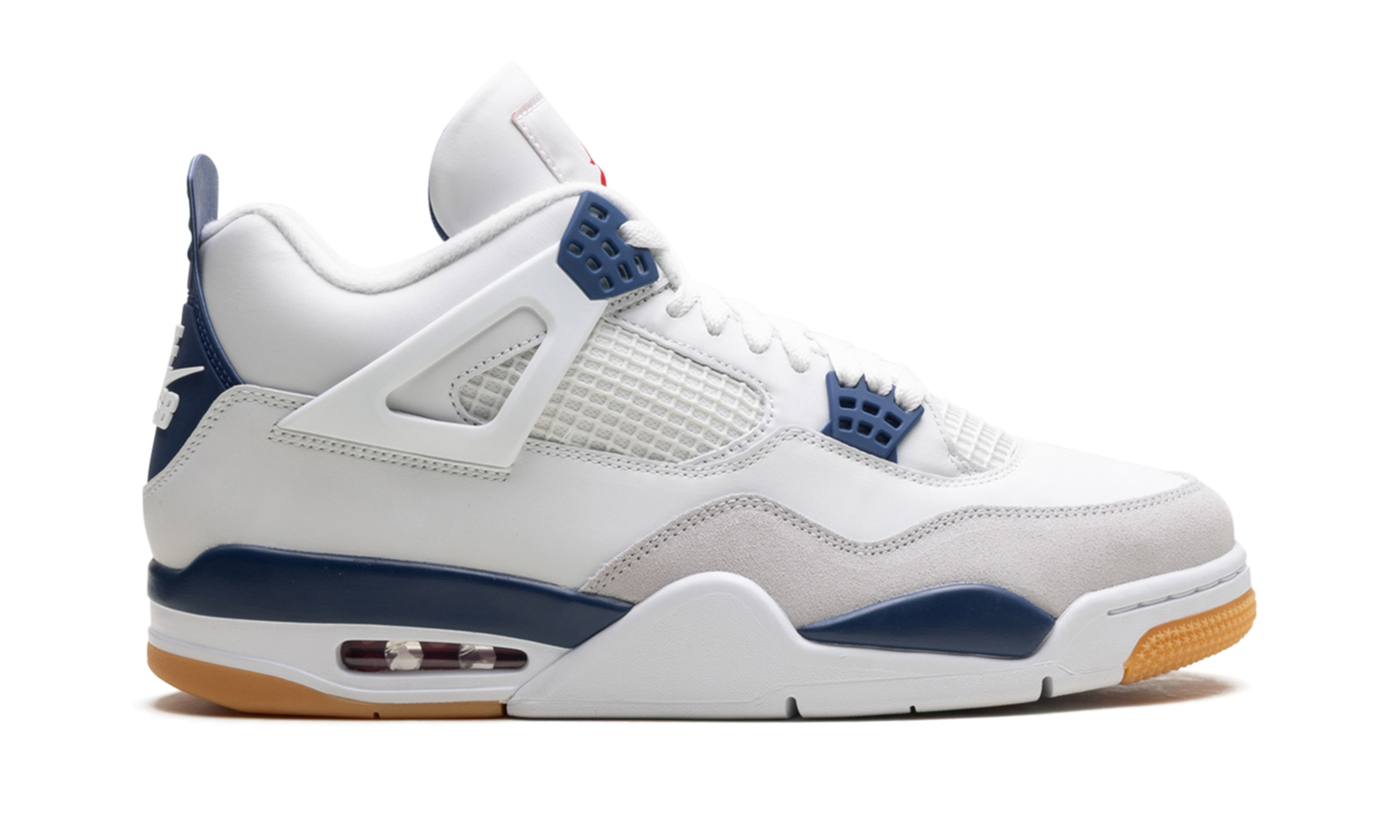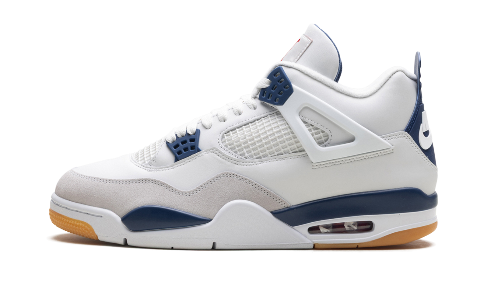 The Nike SB x Air Jordan 4 “Navy” is a new installment in the ongoing collaboration between Nike Skateboarding and Jordan Brand. The Nike SB AJ4 looks like a traditional Jordan 4 but has some unique details. Suede is placed around the toe box to make the shoe more skate-friendly. The clean navy and white upper is accented with a gum outsole, and Nike SB branding appears on the heel.