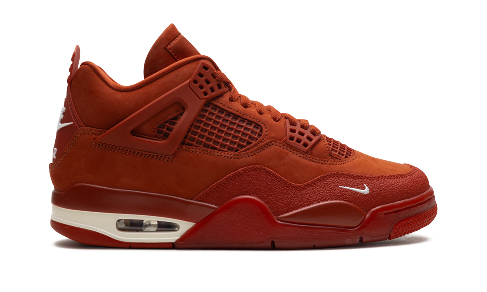 The Nigel Sylvester x Air Jordan 4 “Brick By Brick” further’s the BMX star’s sneaker legacy. Sylvester has transcended bike riding and become a true cultural force, and this AJ4 is a testament to how much hard work it took to get to that place. The “Brick By Brick” theme is applied throughout the Jordan 4. The monochromatic brick red upper is offset with minimal off-white details. Sylvester’s signature “Bike Air” logo appears on the heel in place of the traditional “Nike Air” and the box design is modeled to look like a brick, as well.