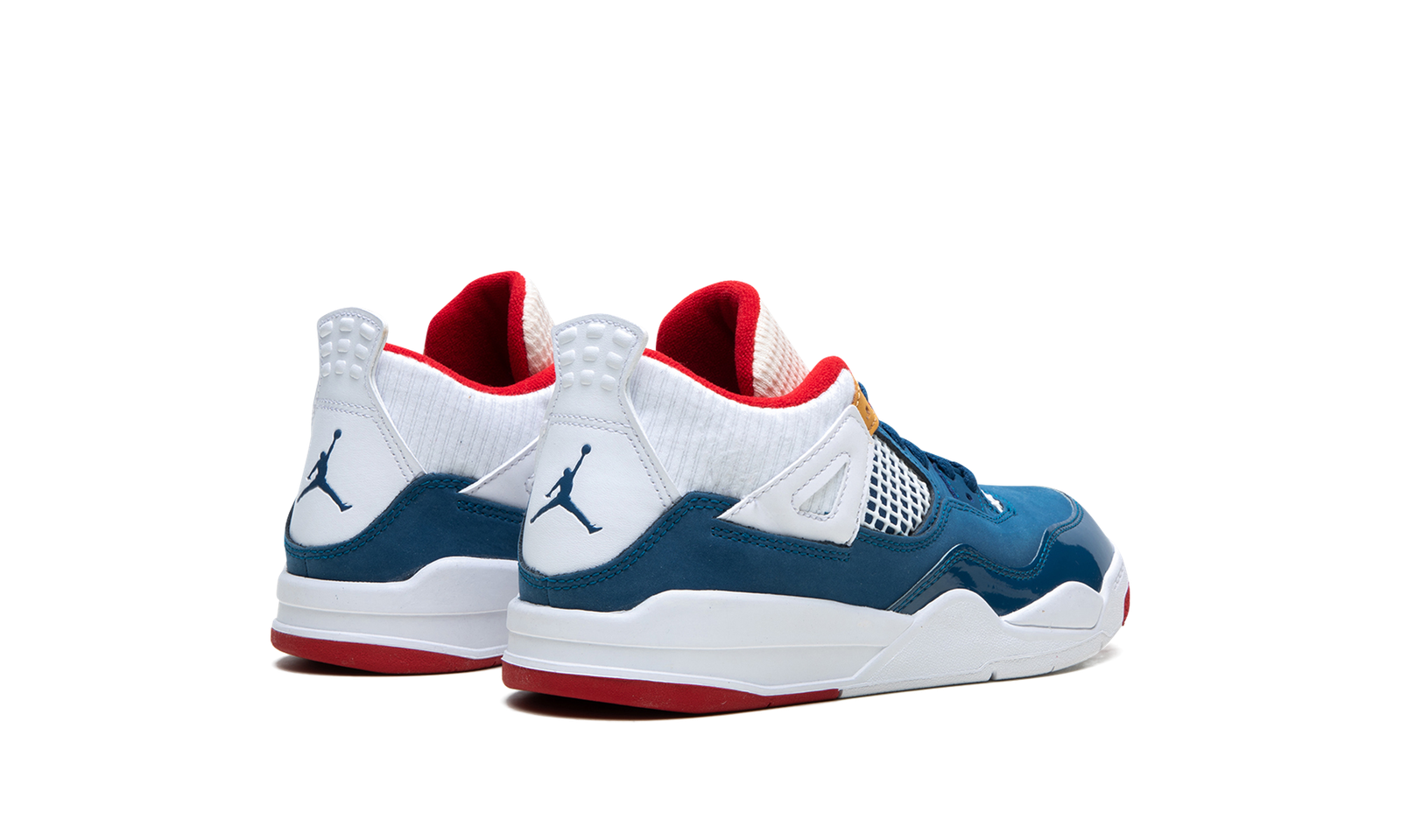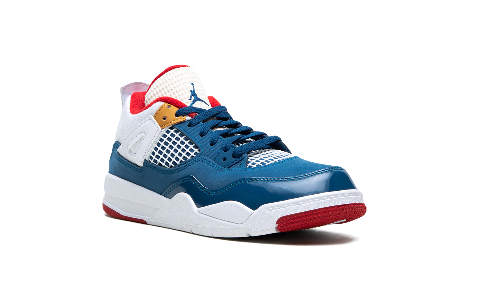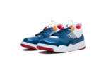 The Jordan 4 PS “Messy Room” is the preschool sizing of Michael Jordan’s fourth signature shoe in a colorway inspired by kids’ lack of organization. Designed in a mismatched color block that looks to kids’ unorganized rooms for inspiration, the “Messy Room” is attention grabbing from every angle. A combination of blue patent and standard leather is found in various places on the shoe’s split design. The collar and heel feature a white ribbed textile. Jumpman branding is found on the tongue and on the heel. The netting on the tongue and mid-panel is designed in white, as is the tongue. A red inner liner completes the fun look. Release date: January 7, 2023