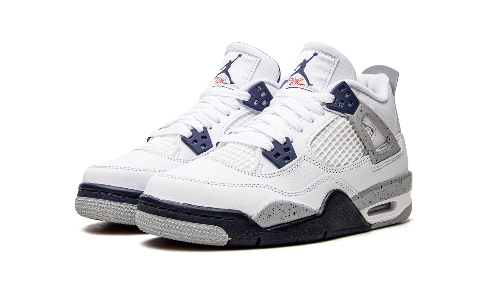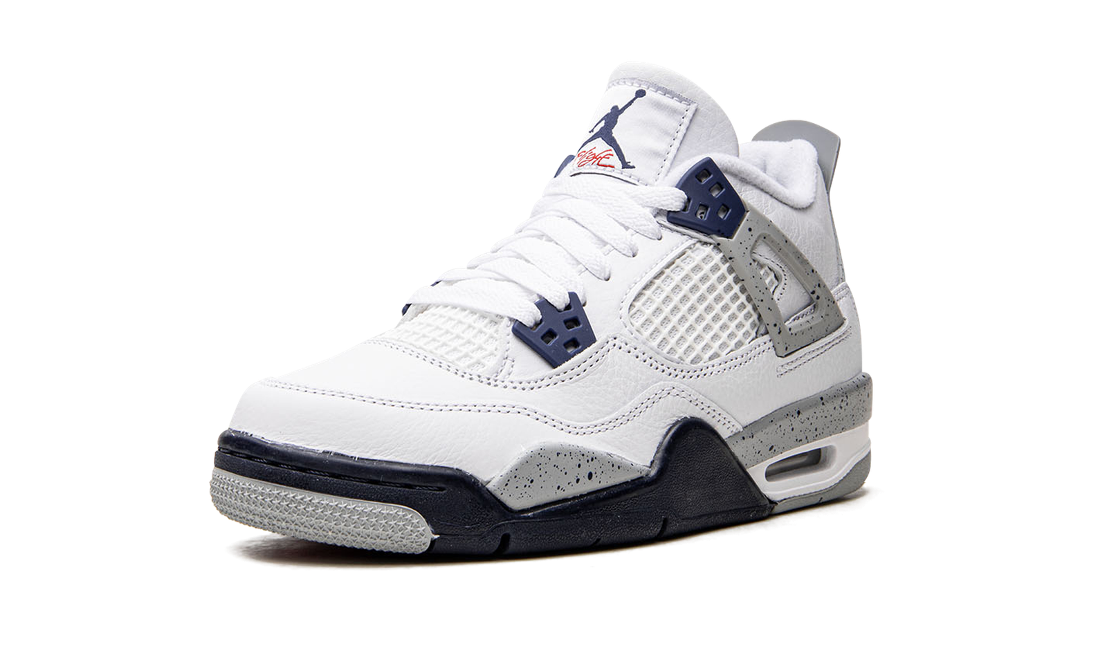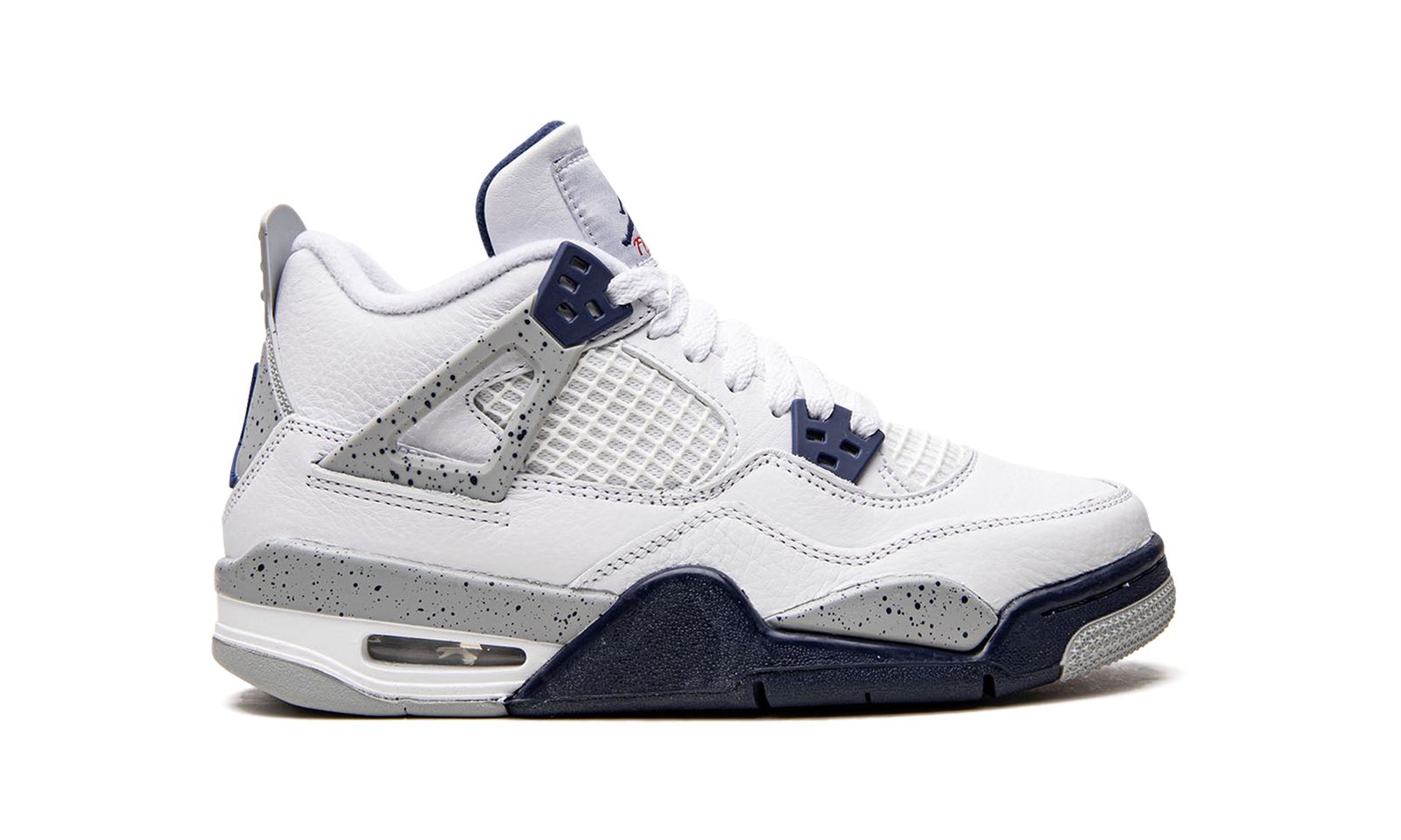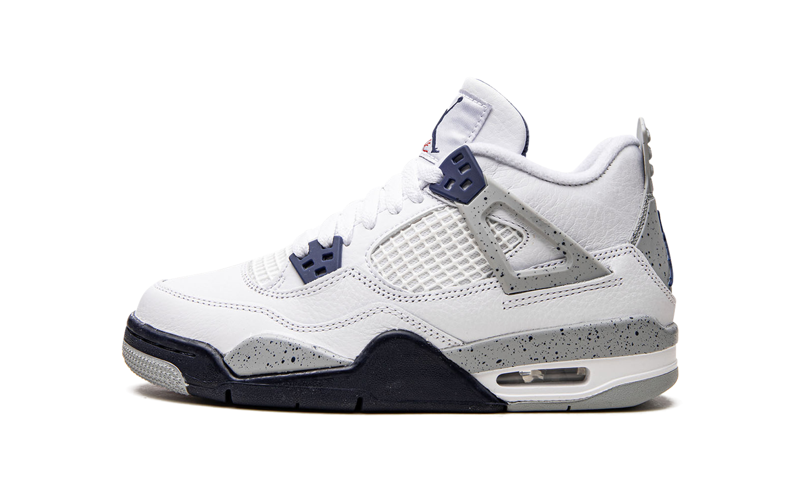 The Air Jordan 4 GS “Midnight Navy” is the youth sizing of the colorway of Michael Jordan’s fourth signature shoe inspired by the model’s iconic “White Cement” style. A versatile look for the retro basketball shoe, the upper is constructed from white leather, save for the tongue and mid-panel which feature tonal mesh detailing. Midnight Navy plastic lace holders are found on the throat and collar. The Jordan 4’s signature “Cement” detailing appears on the “Wings” tabs, on the mudguard, and on the Jumpman branded heel counter. Release date: October 29, 2022