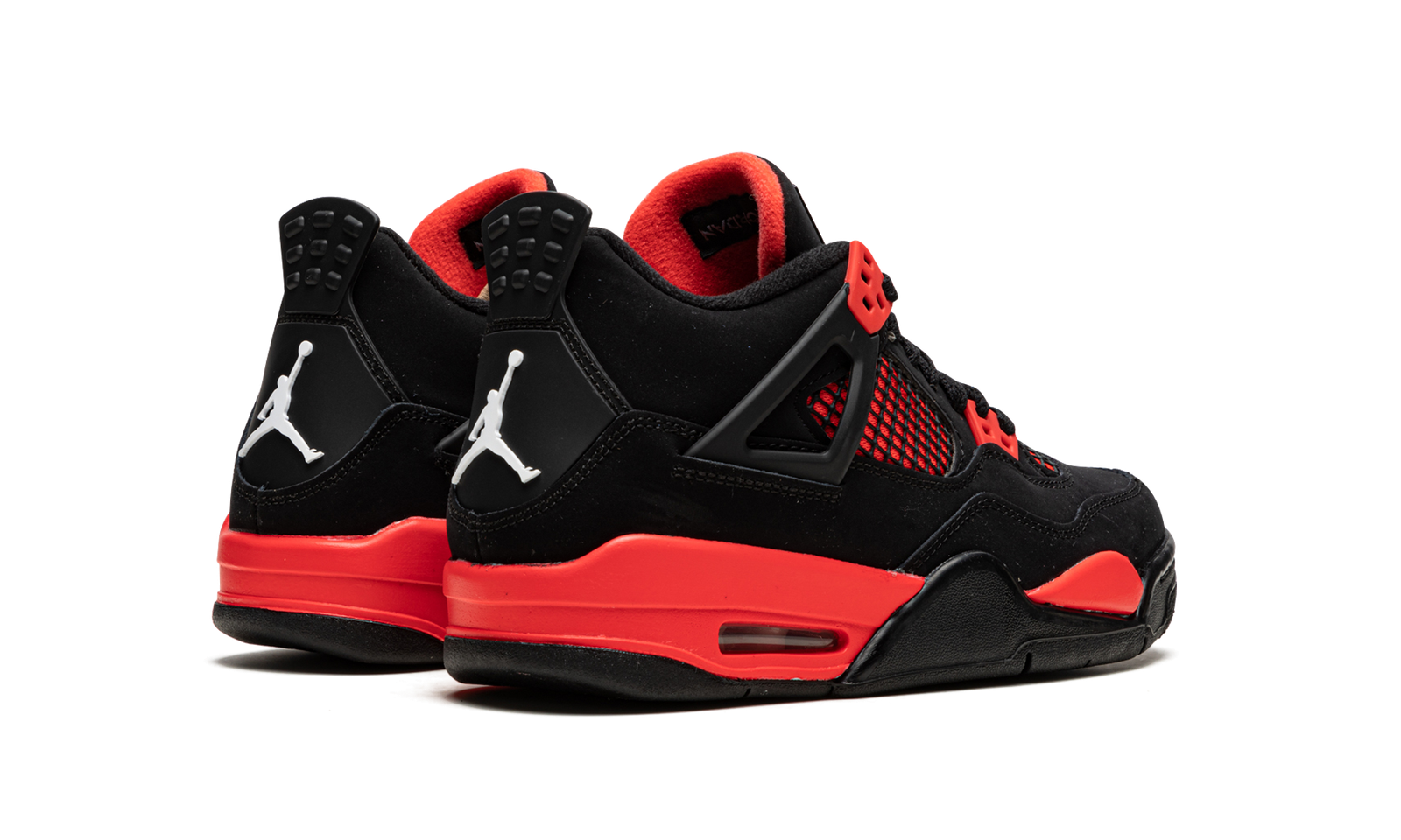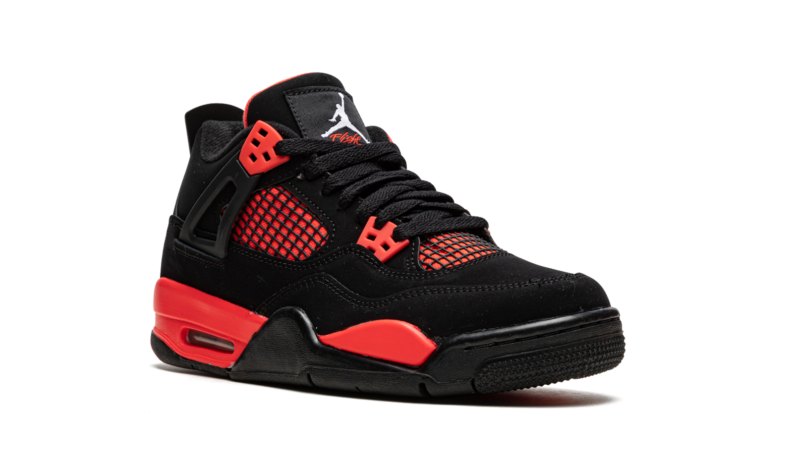The Air Jordan 4 GS “Red Thunder” is the kids version of the colorway of Michael Jordan’s fourth signature model that is inspired by a classic, non-original release of the vintage basketball shoe. The shoe we’re referring to is the Air Jordan 4’s “Thunder” colorway that debuted along with the popular “Lightning” colorway in 2006 before later returning as a standalone release in 2012. The “Red Thunder,” as implied by its name, is styled similarly to the original “Thunder,” but trades Tour Yellow accenting for red. The upper features a black synthetic nubuck base with red “wings” and a red mid-panel contrasted with black netting. The look is repeated on the tongue. Additional red detailing comes into play on the underside of the tongue, on the painted midsole, and on the “Flight” branding in script beneath the white Jumpman on the black nylon tongue tag. A white Jumpman appears on the heel. Finishing touches include a small visible Air unit in the heel of the midsole and a black rubber outsole. Release date: January 15, 2022