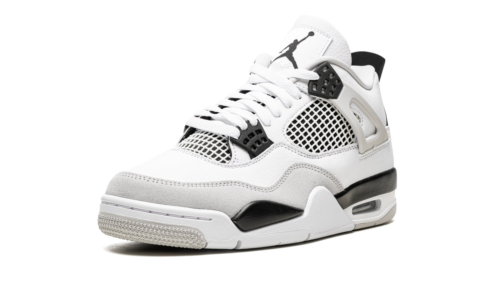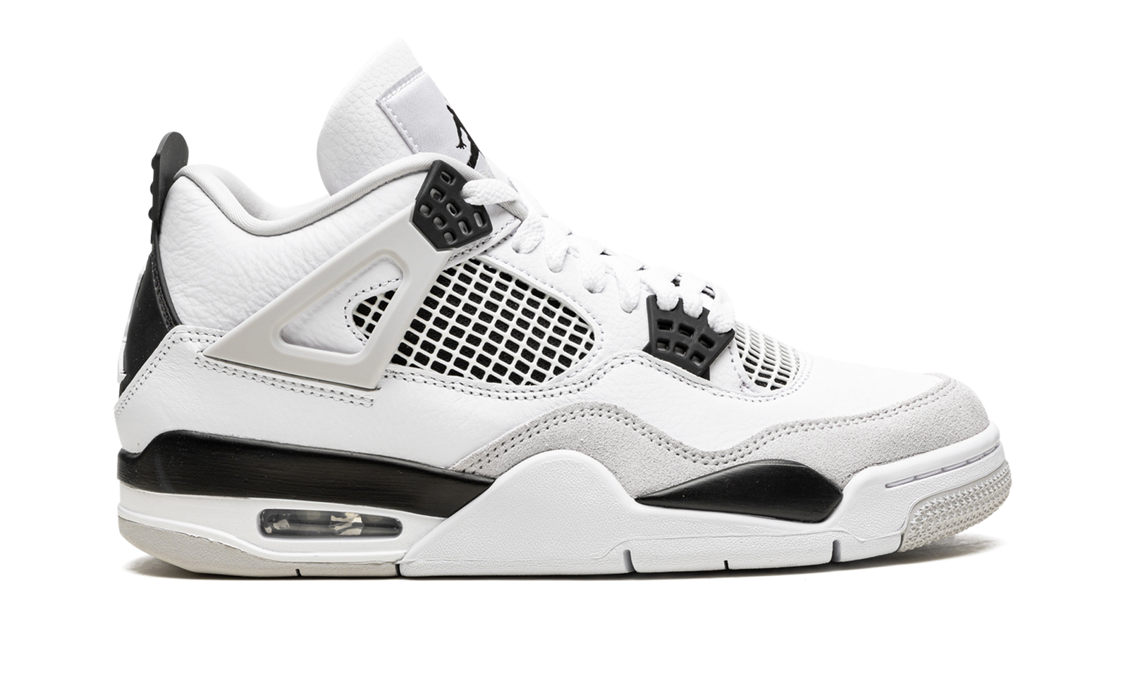The Air Jordan 4 “Military Black” is a neutral colorway of the retro basketball shoe designed in the same color block as the model’s popular, original “Military Blue” style from 1989. The Jordan 4 “Black Military” is undoubtedly inspired by the Jordan 4 “Military” from 1989 as it features the same color design as the throwback colorway, just with black accents instead of blue. The shoe’s upper is constructed with a white leather base with grey suede on the forefoot overlay. The TPU eyelets and heel counter are accented in black. As are the underlays beneath the netting on the sides and on the tongue. Classic Jumpman logo detailing can be found on the heel and on the tongue tag. Release date: May 21, 2022