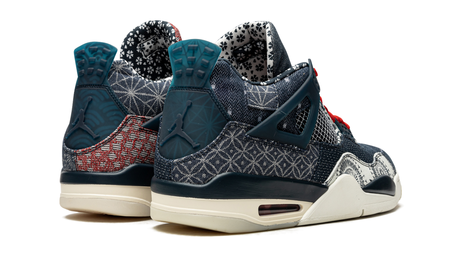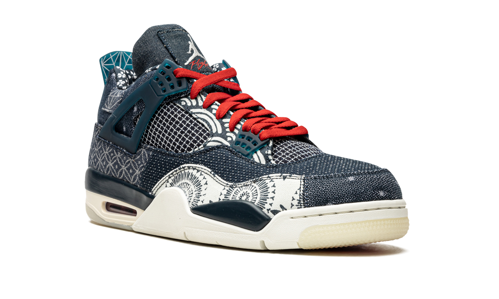 The Air Jordan 4 “Sashiko” features the traditional Japanese theme on Michael Jordan’s fourth signature shoe. A December 2020 release, the “Sashiko” colorway marks the first instance of Jordan Brand using the theme following its appearance on the Nike SB Dunk Low and Nike Kyrie S2 Hybrid. The “Sashiko” displays the popular shishiko method of embroidery and stitching that is used to make old or used items “new again.” Giving off a pre-worn vibe, the toe of the right shoe features a blue and red denim patchwork design. The rest of the overlay panels display the rugged jean material in a similar bespoke manner. Red shoelaces sit on top the mesh tongue of the right shoe and blue laces can be found on the left shoe. Moreover, Jordan Brand utilizes a split red and blue denim motif on the left tongue, and a light blue-on-dark-blue look for the left tongue. Standard Jumpman branding appears on the semi-translucent blue heel tab to finish off the look. Release date: December 5, 2020.