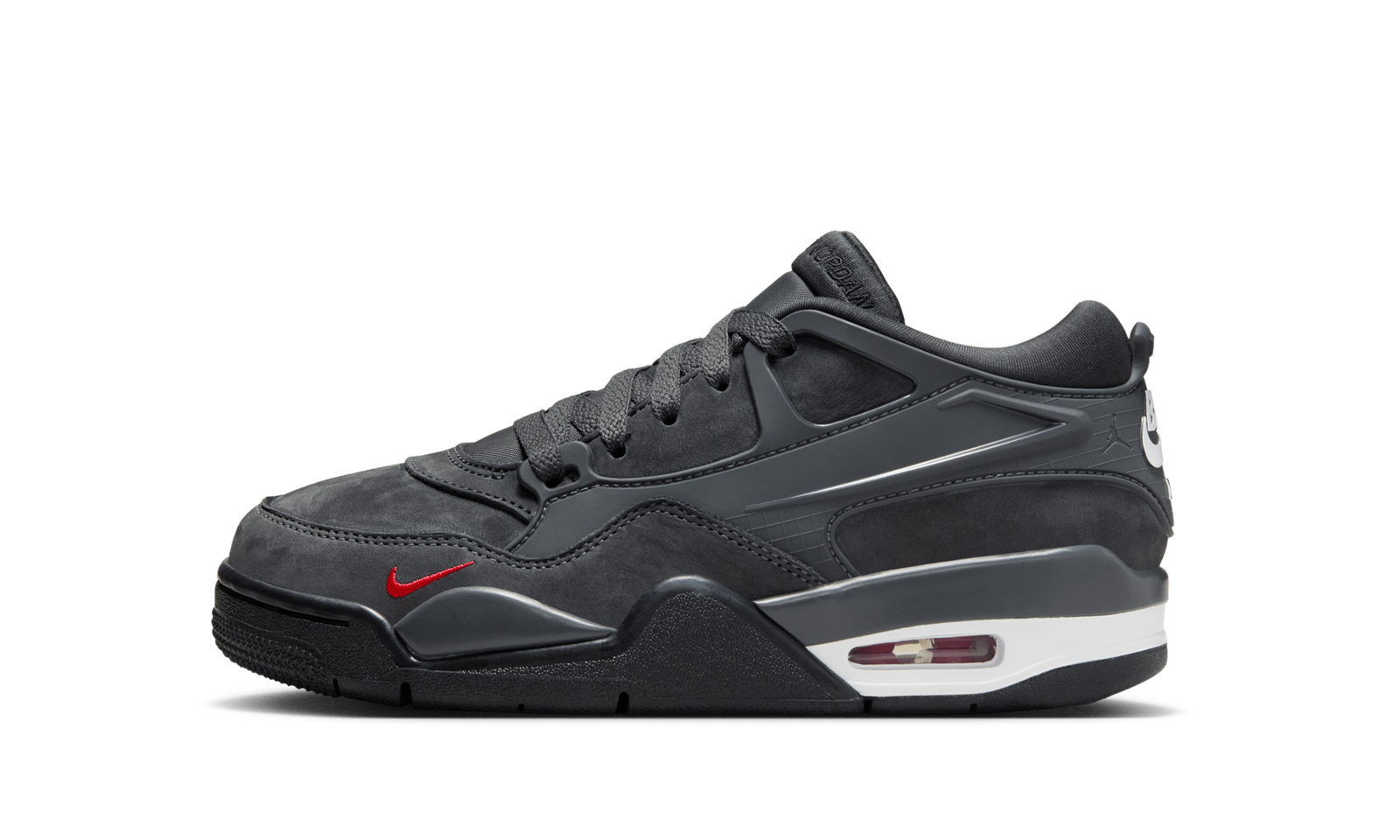 Roll into legendary style with the Air Jordan 4 RM GS “Nigel Sylvester Driveway Grey.” This reimagined Grade School sneaker, a collaboration with BMX star Nigel Sylvester, pays homage to the gray pavement of his grandmother’s driveway. Featuring a sleek, Anthracite suede upper with tonal TPU elements, this shoe updates the classic AJ4 with a lower-cut design for ultimate street-ready versatility. Signature “Bike Air” branding on the heel and a tiny University Red Swoosh add exclusive detail to this modern tribute.