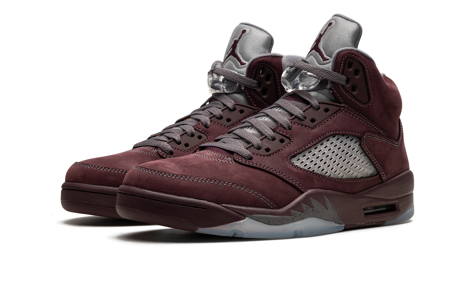 The Air Jordan 5 “Burgundy 2023” is the modern re-release of the non-original colorway of the retro basketball shoe that debuted in 2006. Once part of Jordan Brand’s “LS” or “lifestyle” collection, the Jordan 5 “Burgundy” was one of the model’s first non-original colorways, and one of its most popular releases of the 2000s. The modern edition is nearly identical to the original 2006 release. Deep Burgundy suede appears on the shoe’s upper. Translucent netting is found on the mid-panel and on the tongue. A Deep Burgundy Jumpman appears on the silver reflective tongue and a silver Jumpman is embroidered on the heel. Light Graphite shark tooth detailing is found on the burgundy painted midsole. Release date: September 9, 2023