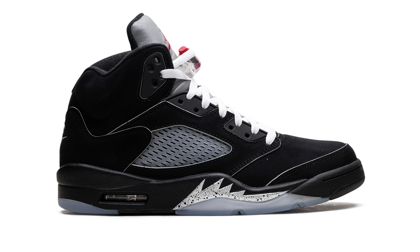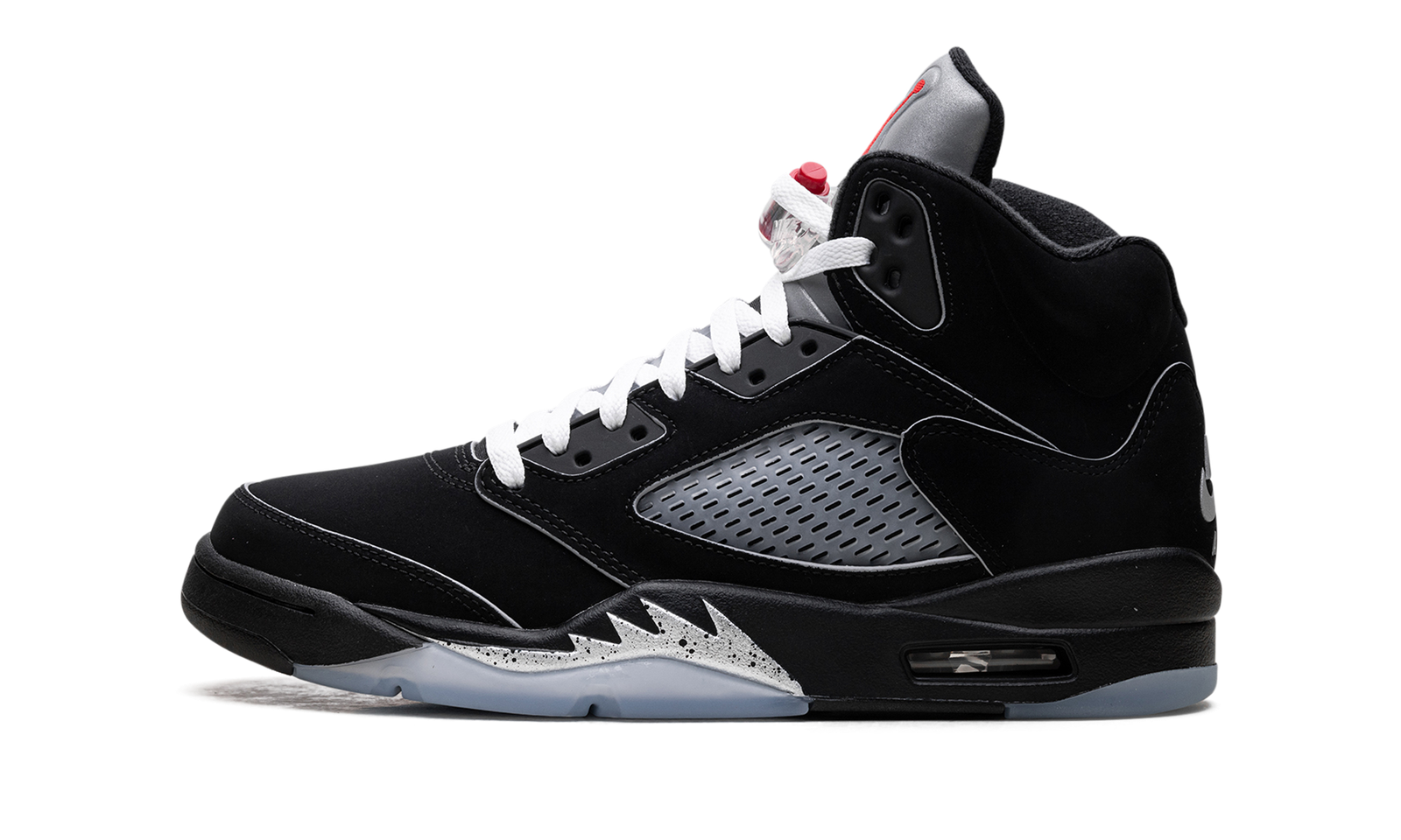 The Air Jordan 5 “Black Metallic Reimagined 2025” is an updated version of the iconic colorway of Michael Jordan’s fifth signature sneaker. The 2025 AJ5 “Black Metallic” is part of Jordan Brand’s Reimagined series that features subtle updates to the original. The Jordan 5 “Black Metallic Reimagined” has white laces and reflective hits across the edges of the upper’s panels as well as on the Nike Air branding on the heel. This Air Jordan 5 retains many of the original design signatures including the fighter jet-inspired teeth around the midsole and mesh side panels.