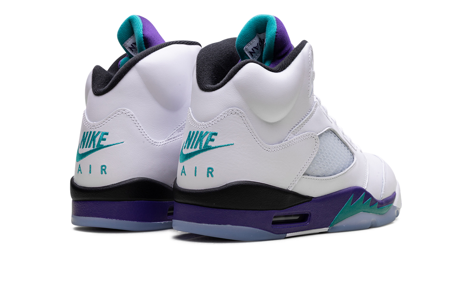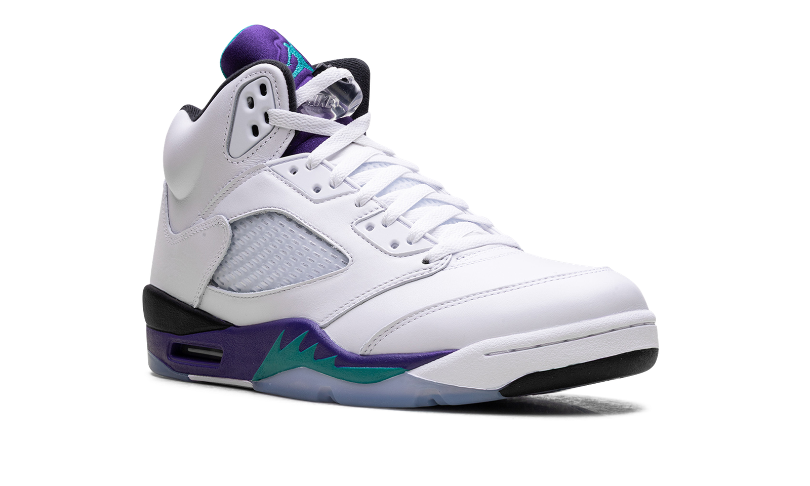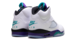 The Air Jordan 5 “Grape” is one of the most popular colorways of Michael Jordan’s fifth signature shoe. Popularized by its appearance on the TV show The Fresh Prince of Bel-Air, the “Grape” AJ5 OG returned in 2025. The sneaker features a white upper that is accented with a purple tongue adorned with an aqua Jumpman logo. The Jordan 5 also has purple and aqua accents on the midsole and the Air Jordan 5’s signature toggle lace lock.