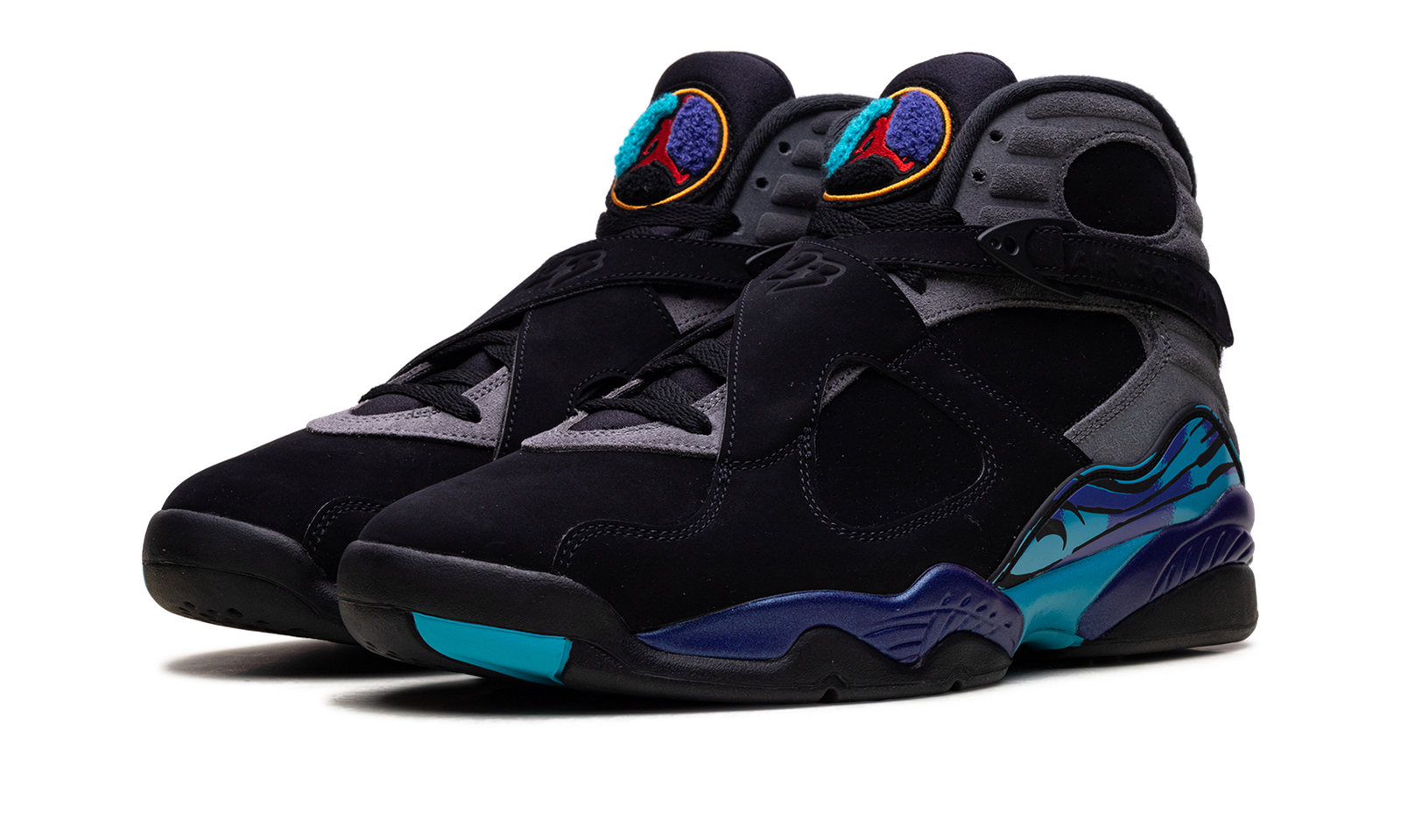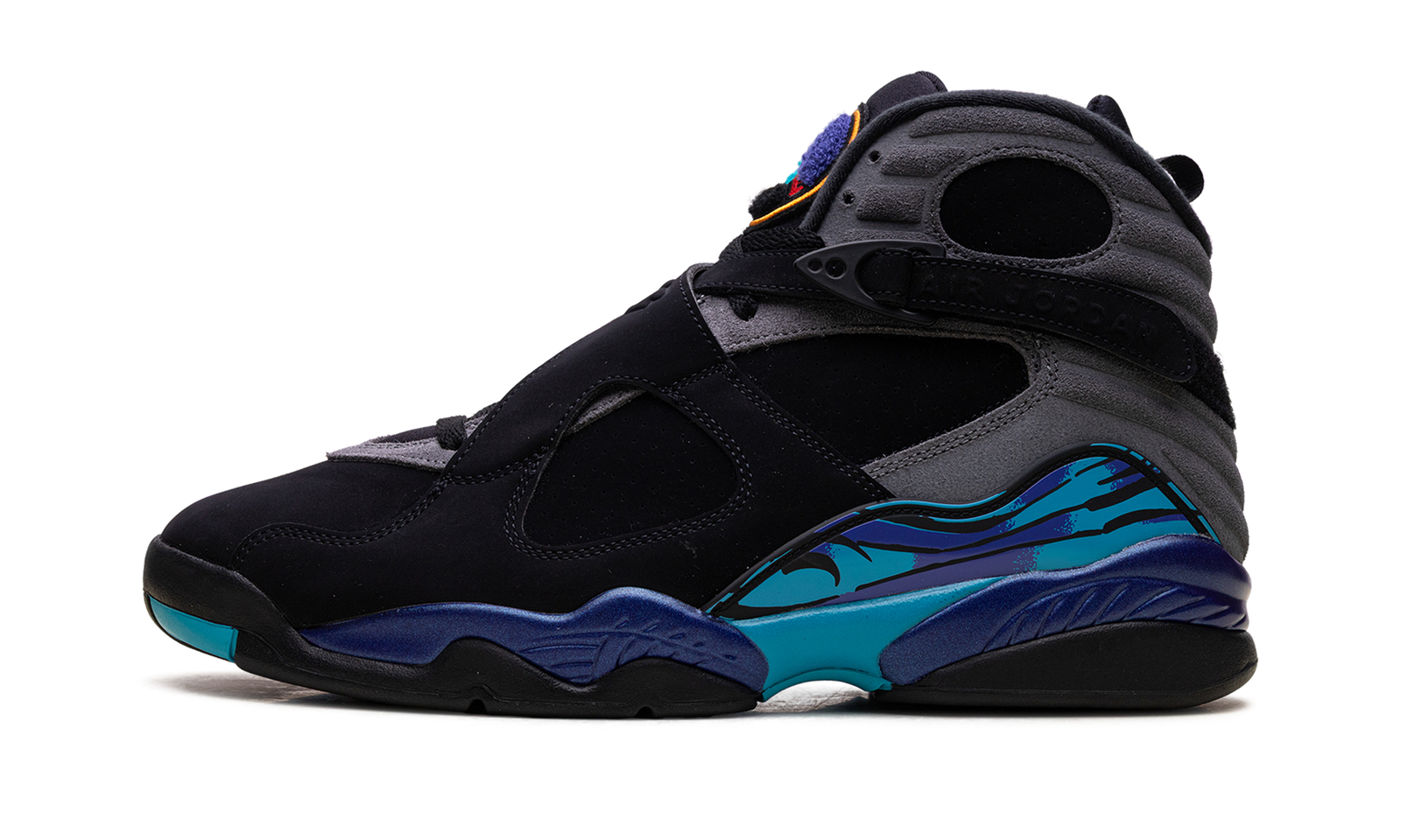 Make a vibrant statement with the unmistakable style of the Air Jordan 8 “Aqua.” The bold black nubuck upper is highlighted by the iconic aqua and concord accents on the midsole and signature chenille tongue logo. The distinctive cross straps add to its standout look, making this colorful retro a must-have for any sneaker enthusiast.