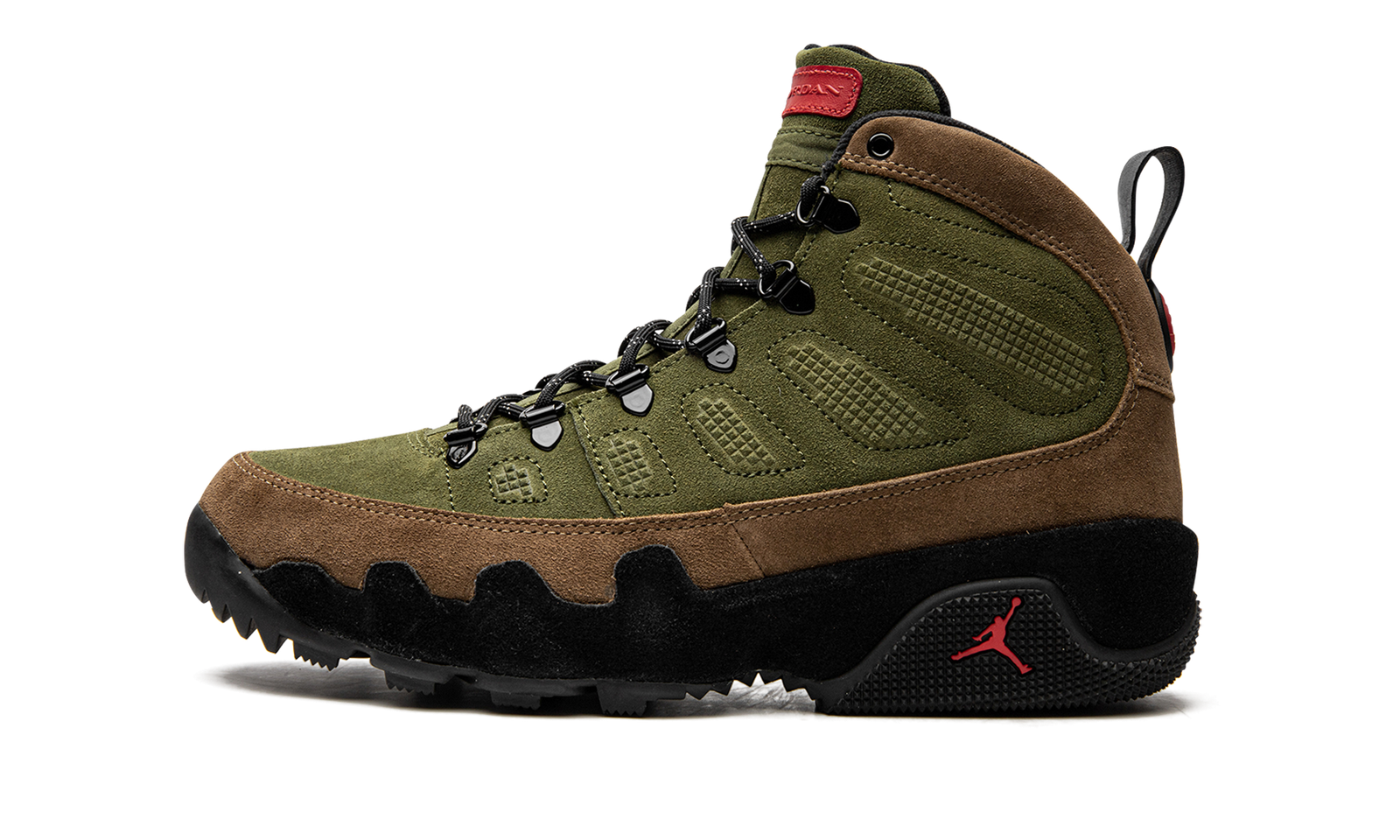 The Air Jordan 9 Retro Boot “Beef and Broccoli” is an alternate version of Michael Jordan’s ninth signature shoe reimagined as a winter boot. The Jordan 9 Boot features a rugged look and feel made to withstand the elements. The “Beef and Broccoli” colorway references a classic Timberland boot colorway. The shoe is complete with an olive suede upper with brown suede overlays. A water-resistant coating provides protection against wet weather. Rugged, boot-like details include rope laces and metal eyelets, and a lugged black rubber outsole. Release date: December 1, 2018