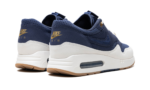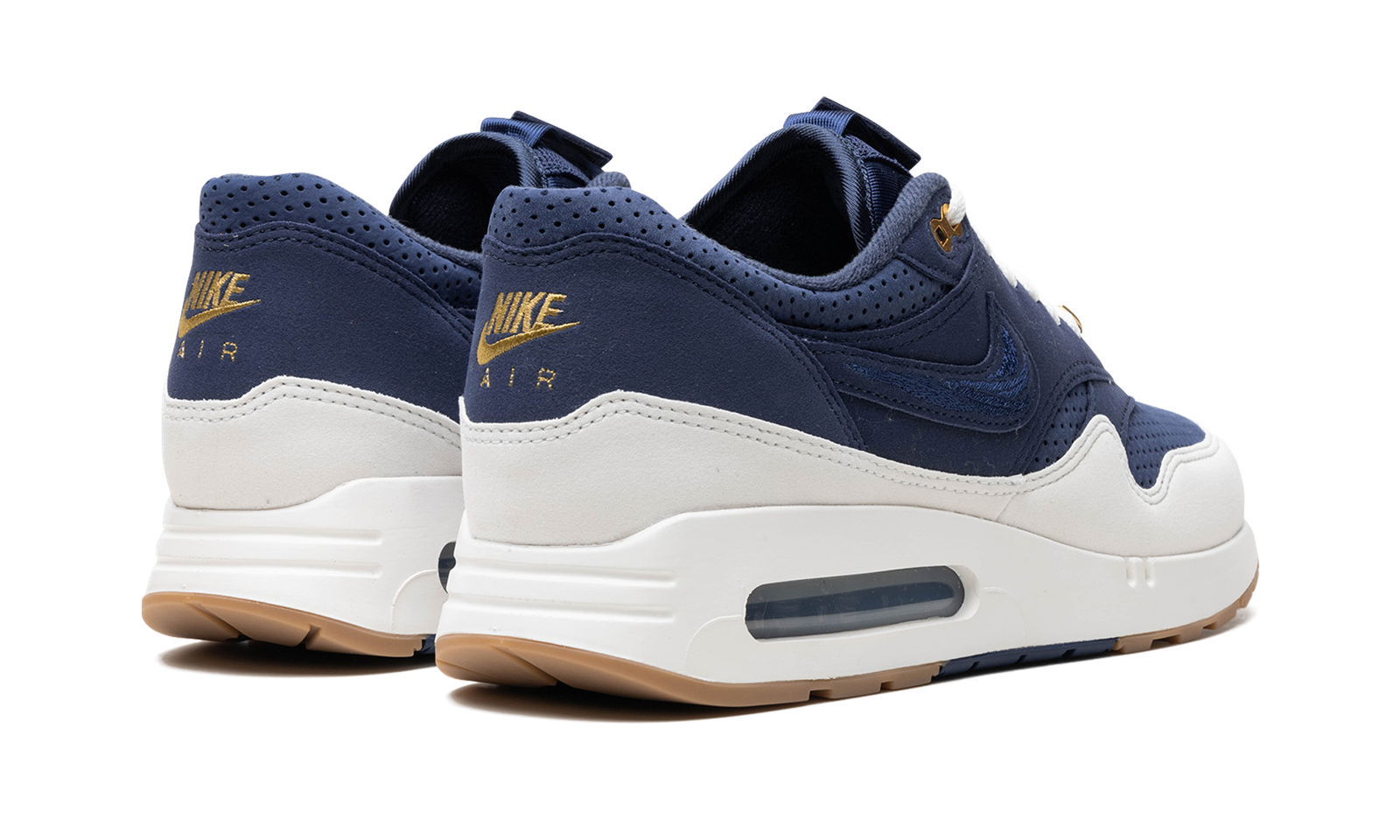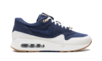 The Nike Air Max 1 ’86 “Jackie Robinson” is a special colorway of the retro performance running shoe inspired by the Baseball Hall of Famer and his lasting impact in sports and civil rights. Jackie Robinson broke baseball’s color barrier in 1947 when he played his first game for the Brooklyn Dodgers, and subsequently had a decorated career with the team thereafter. As for this colorway, the upper features a perforated navy suede base contrasted with tonal suede overlay. A navy suede Swoosh appears on the sides, while Metallic Gold eyelets give the shoe a premium look. Details inspired by Robinson’s baseball career include a Metallic Gold “42” (for his jersey number with the Dodgers) emblem on the vamp, and “42” branding on the tongue tag in the shape of a baseball diamond. A white mudguard and midsole, and a Gum rubber outsole complete the look. Release date: April 15, 2024