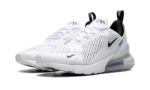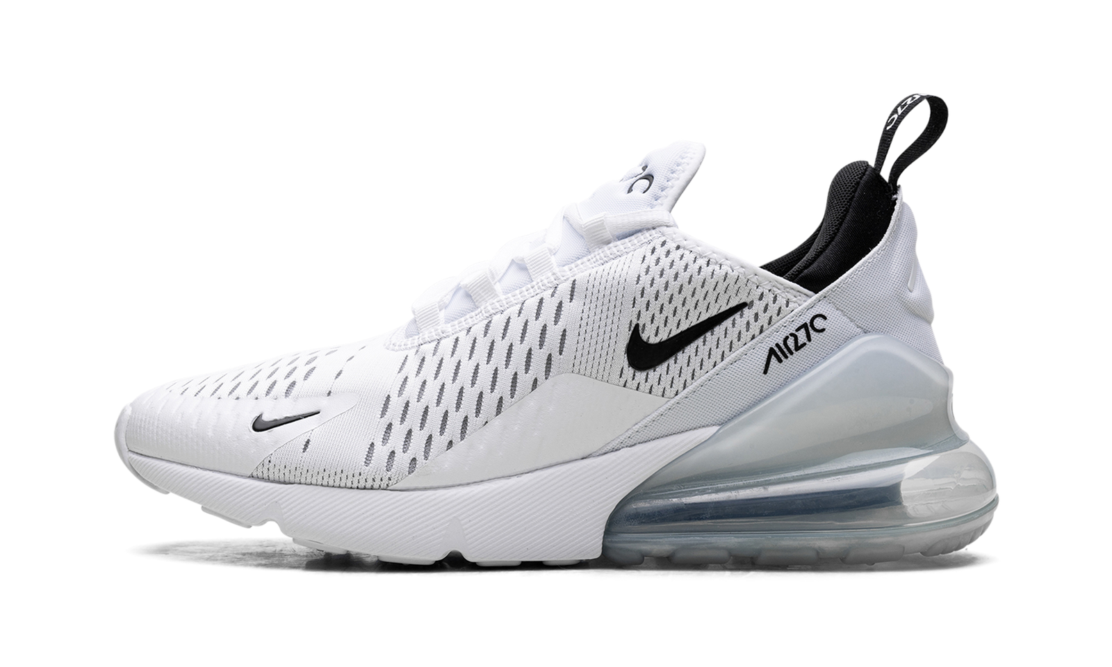 The Nike Air Max 270 strikes a bold stance with a classic color scheme. The Air Max 270 has a white engineered-mesh upper paired with a black inner bootie and small black hits of Nike branding throughout the sneaker. Nike’s largest-ever visible heel Air bag provides a super comfortable fit. The Nike Air Max 270 shoe’s neoprene bootie construction sculpts to the foot’s natural shape and flexes with your foot.