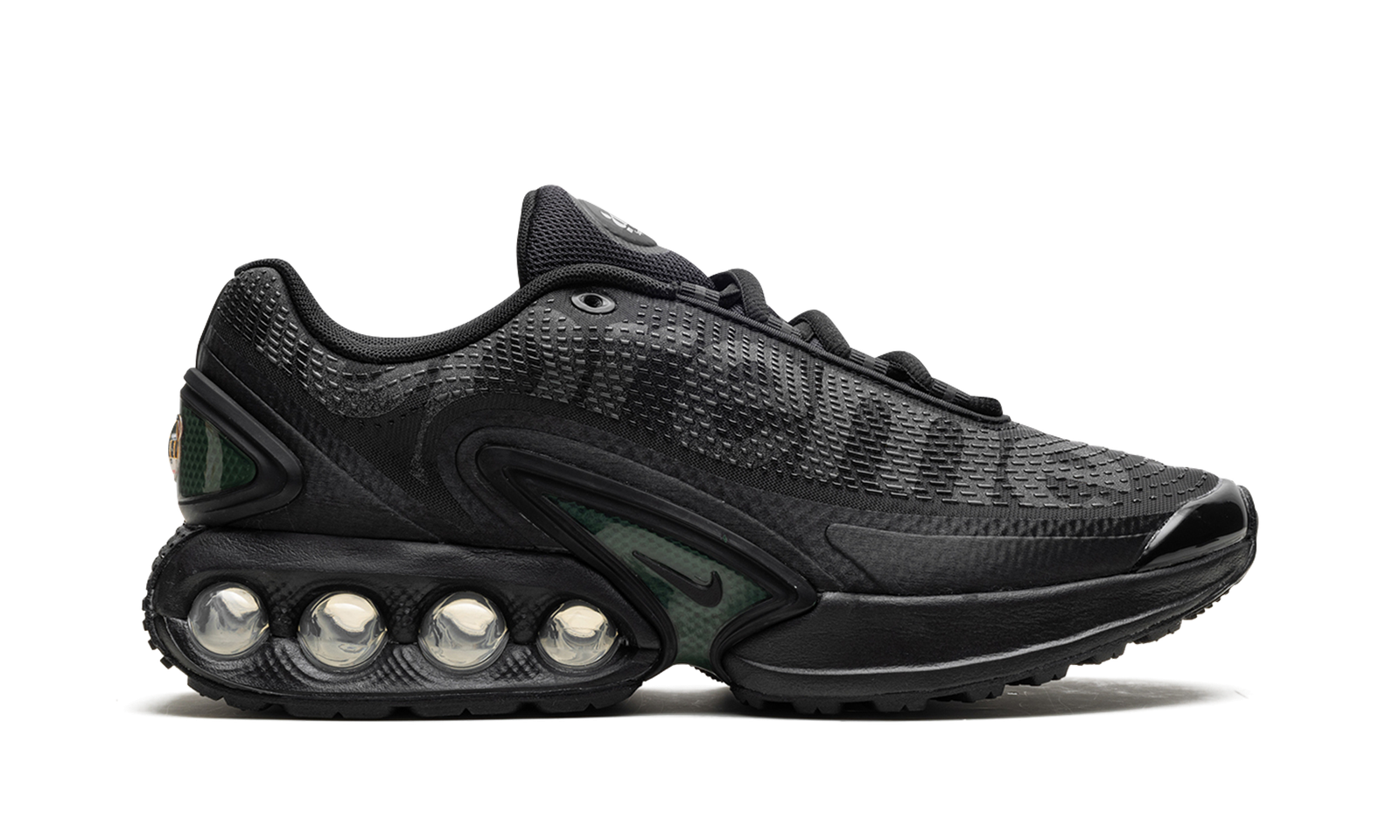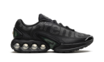 The Supreme x Nike Air Max Dn “Black” is a collaboration between Supreme and Nike on the lifestyle shoe that debuted in 2024. The Air Max Dn was introduced by Nike as part of its celebration for its annual Air Max Day in March 2024. It was also included in the high-profile collaboration with Supreme for the brand’s Spring/Summer 2024 collection. As far as the design of the shoe at hand, it features a seamless black mesh construction with tonal no-sew overlays. “Supreme” branding is printed on the lateral side in reflective lettering, while a co-branded logo can be found on the tongue and heel. Underfoot, a green-tinted TPU shank plate can be seen in the midsole, while exposed dual-pressure “tubes” filled with Nike’s Dynamic Air cushioning technology appear in the heel with “Supreme” branding printed on the lateral side. Release date: February 22, 2024
