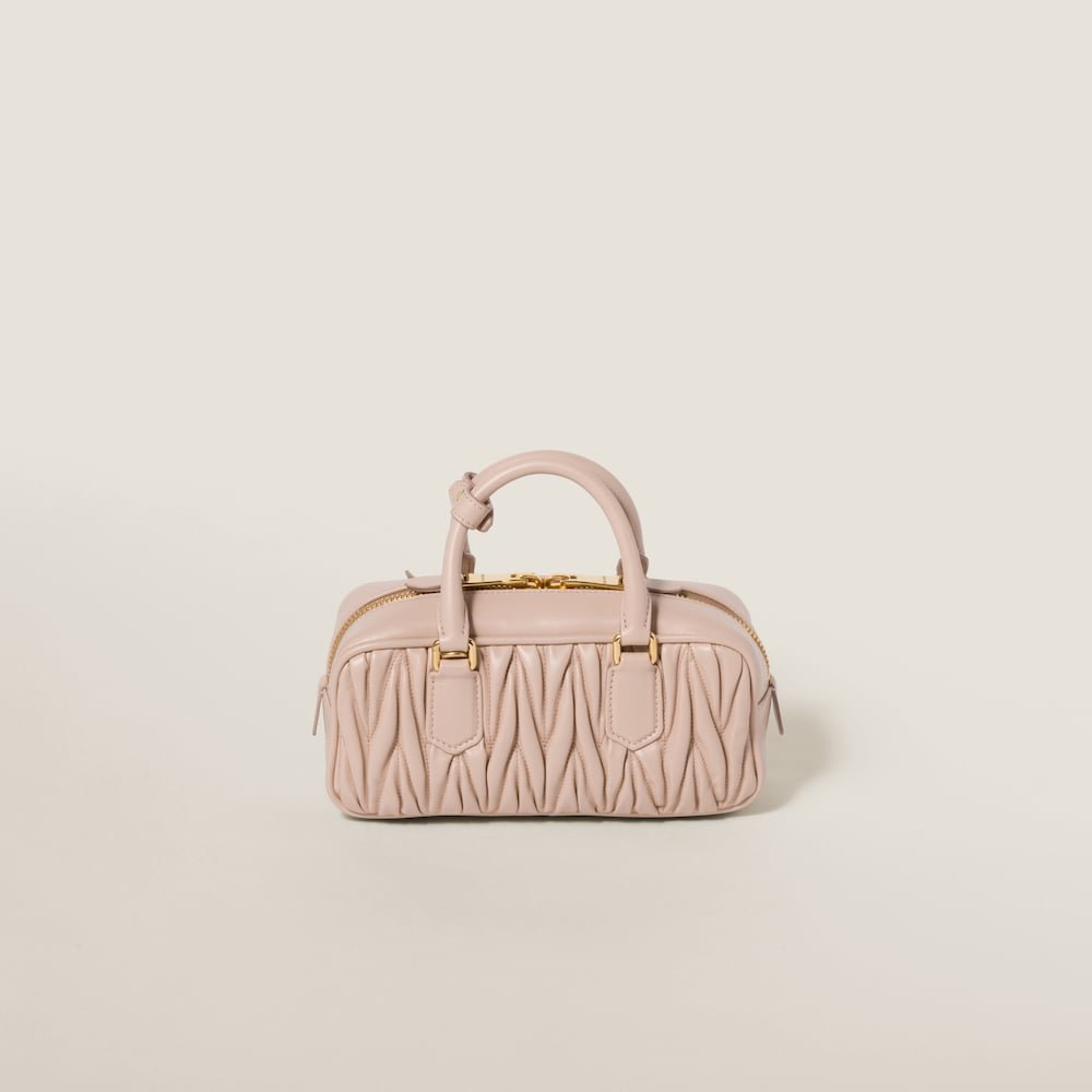 This Arcadie leather mini-bag expresses a concept of fashion as a means for translating a reaction to current reality into a particular shape. The light padding gives a voluminous appearance and cosmopolitan style to the accessory. The lettering logo, in the same color as the hardware, crosses the boundaries between function and decoration and helps define the distinctive and iconic aesthetic of the top-handle bag.