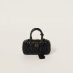 This Arcadie suede bag expresses a concept of fashion as a means for translating a reaction to current reality into a particular shape. The light padding gives a voluminous appearance and cosmopolitan style to the accessory. The lettering logo, in the same color as the hardware, crosses the boundaries between function and decoration and helps define the distinctive and iconic aesthetic of the top-handle bag.