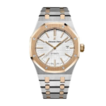 The Royal Oak Jumbo Replica from Audemars Piguet is a striking watch. It features an automatic movement with a caliber AP 3120 and a power reserve of 60 hours. The case is made of 904L stainless steel and has a sapphire crystal. It is 41.00 mm in size and 9.80mm thick. The bracelet is also made of 904L stainless steel and has adjustable links for all sizes. The dial is nicknamed the Grande Tapisserie and is black with stick and dot indices. The hour markers are made of 904L stainless steel and the hands are stick. The watch has a date function and is water-resistant up to 30m.