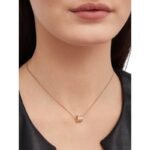 Inspired by the world-famous amphitheater, the Colosseum, the B.zero1 necklace is a true expression of Bvlgari’s creative vision, challenging the very essence of jewelry design. Its unique, pure spiral shape symbolizes the harmony of past, present and future – reflected in the splendor of the Eternal City – and the pioneering spirit of the collection. B.zero1 necklace in 18K rose gold with pavé diamonds.