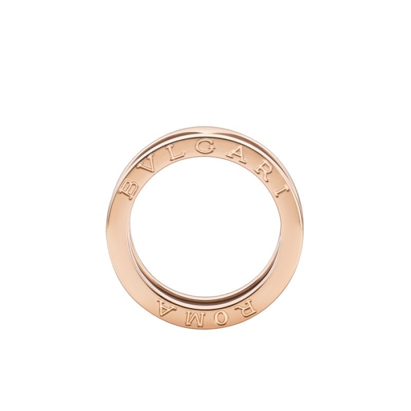 Inspired by the world-famous amphitheater, the Colosseum, the B.zero1 ring is a true expression of Bvlgari??s creative vision, challenging the very essence of jewellery design. Its unique, pure spiral shape symbolises the harmony of past, present and future ?C reflected in the magnificence of the Eternal City ?C and the pioneering spirit of the collection. B.zero1 double band ring in 18K rose gold and cermet.