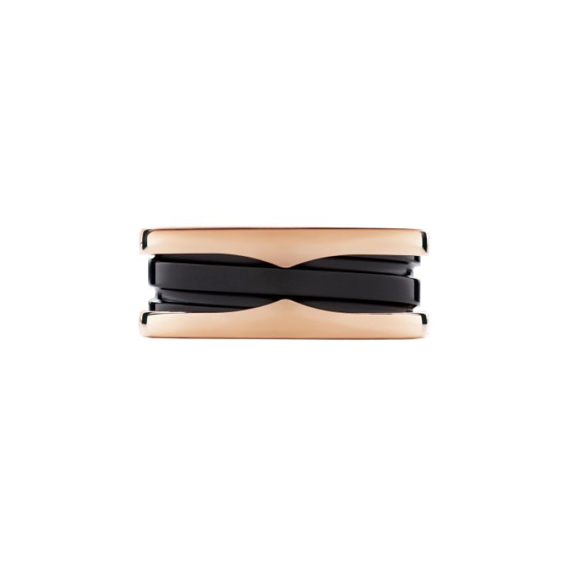 Inspired by the world-famous amphitheater, the Colosseum, the B.zero1 ring is a true expression of Bvlgari??s creative vision, challenging the very essence of jewellery design. Its unique, pure spiral shape symbolises the harmony of past, present and future ?C reflected in the magnificence of the Eternal City ?C and the pioneering spirit of the collection. B.zero1 ring in 18K rose gold, embellished with black ceramic.